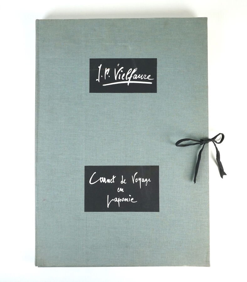 VIELFAURE (Jean-Pierre) - Carnet de voyage en Laponie. Sérigraphies - Colombes ; 1972 - 1 volume In-folio en feuilles sous chemise toilée grise à rabats et à lacets titrée au 1er plat - 10 sérigraphies de Vielfaure, toutes numérotées et signées - Très bon exemplaire numéroté sur vélin d'Arches (n°23 sur les 35, tirage total : 40), signature de l'artiste à la justification