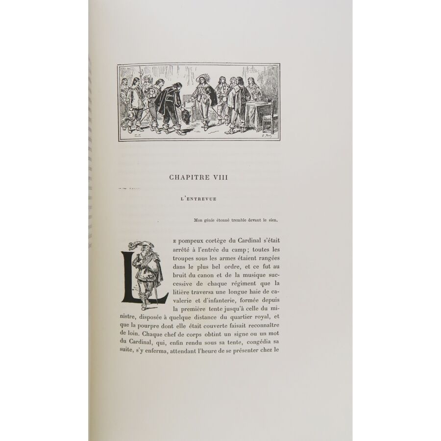 Tirage de grand luxe réimposé in-4, limité à 50 exemplaires sur papier à la cuve spécialement imprimés pour M. A. Ferroud contenant 3 états (pures, avant et avec lettre) des 12 eaux-fortes de Dawant gravées par Gujean à savoir : 1 frontispice, 1 vignette au titre et 10 pl. hors-texte. En-têtes, lettrines et culs-de-lampe gravés par Emile Mas d'après Sébastien Leclerc (Vicaire VII -1056). Très bel exemplaire.