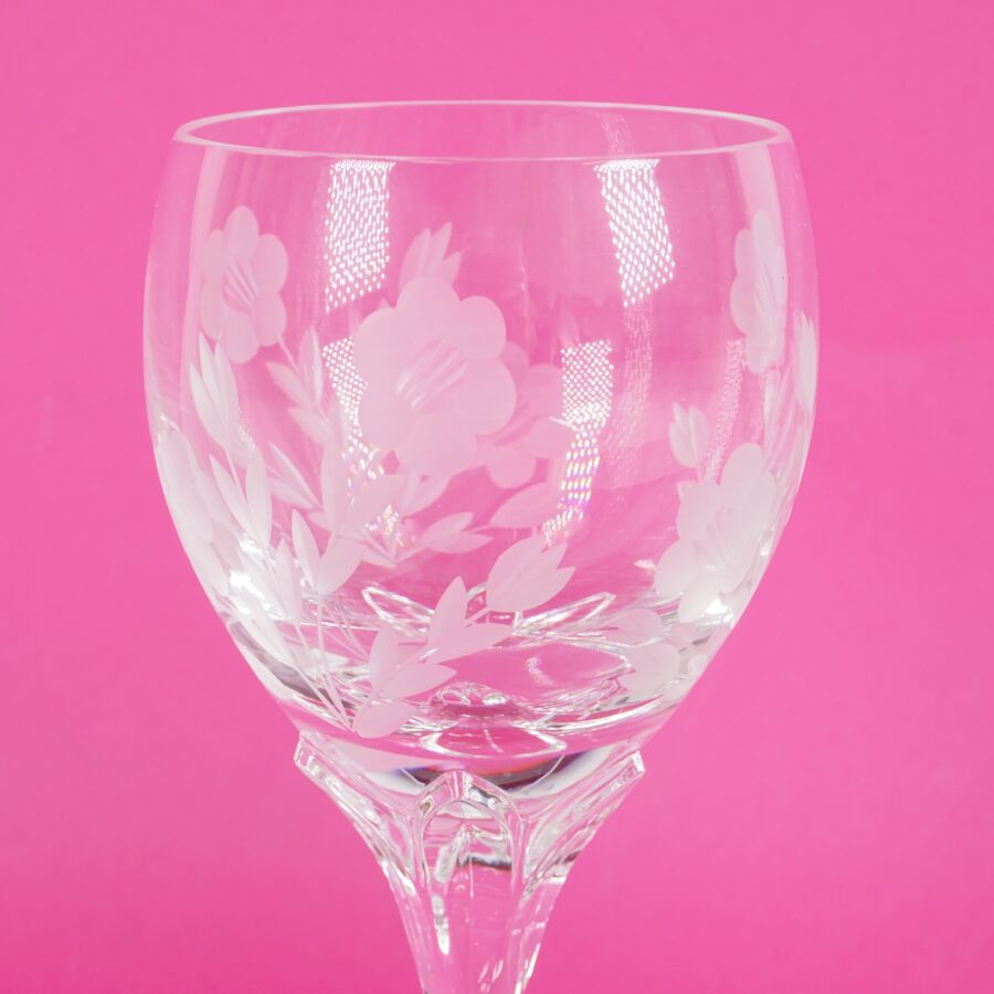 VILLEROY & BOCH : Partie de service de verres, modèle "Anémone", à décor satiné de fleurs, comprenant 12 verres à vin et 12 verres à eau, présentés dans leurs boîtes d'origine, H. 13 cm. H. 16 cm.