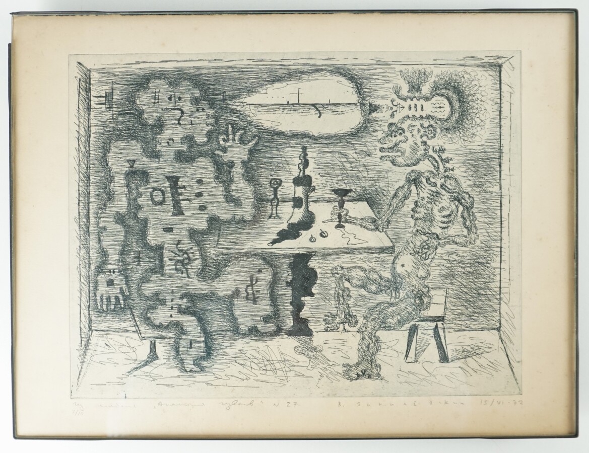 Vladimir YANKILEVSKY (1938-2018), De l'album "Anatomie des émotions" (1972), deux gravures à l'eau-forte signées et datées en bas à droite, numérotées 6/10 et 7/10 en bas à droite, 25 x 29.5 cm.
