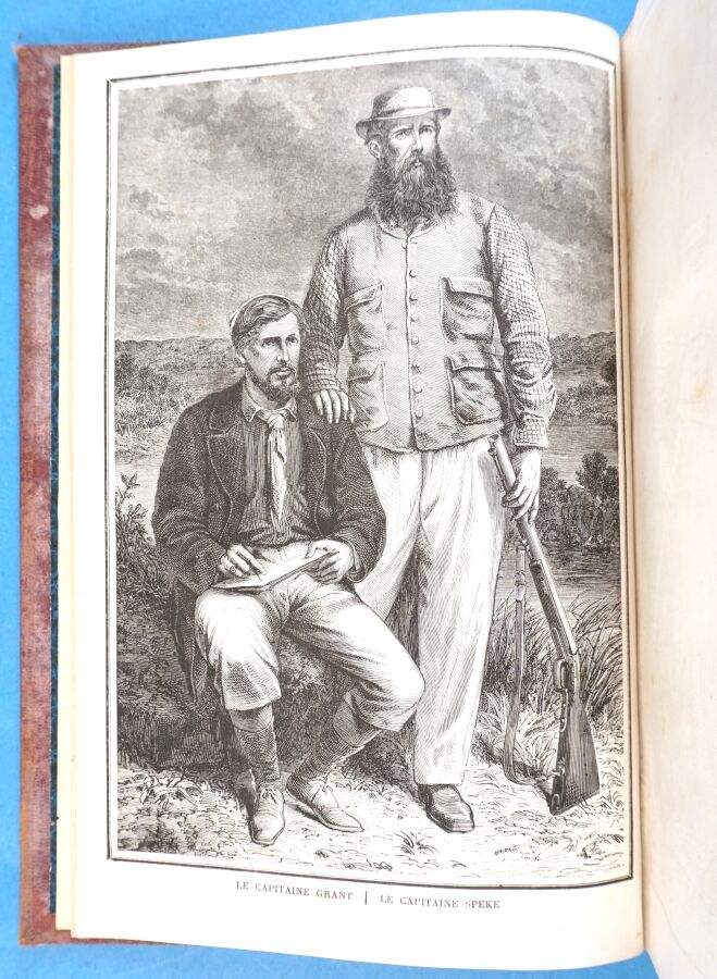 [VOYAGE - AFRIQUE] - SPEKE (John Hanning) - Les sources du Nil. Journal de voyage - Paris ; Librairie de L. Hachette et Cie, 1865 - 1 volume In-8° - Portraits frontispice - Carte et gravures in et hors texte d'après les dessins du Capitaine J. A. Grant - Reliure de l'époque demi-chagrin havane - Dos lisse orné à froid et titré or (passé, 1 accroc en coiffe supérieure) - Bon exemplaire intérieur en 2nde édition.
