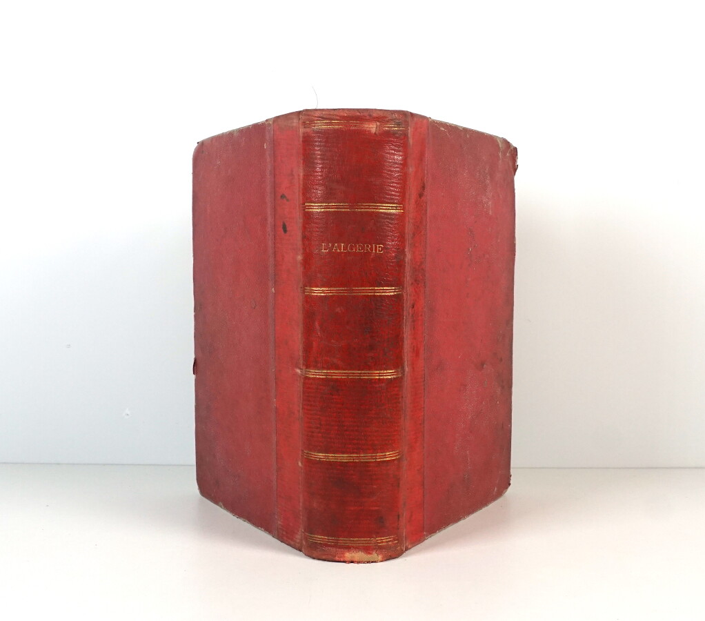 [VOYAGE] - GALIBERT (Léon) - L'Algérie ancienne et moderne depuis les premiers établissements des Carthaginois jusqu'à la prise de la smalah d'Abd-El-Kader - Paris ; Furne et Cie, 1844 - 1 volume In-8° - De rares et pâles rousseurs éparses - Vignettes hors texte par Raffet, certaines en couleurs (quelques-unes manquantes) sous serpentes (certaines froissées ou déchirées) - Carte dépliante en couleurs entoilée in fine - Reliure de l'époque demi-cuir de Russie cerise (défraîchie, coins usés, charnières fendues) - Dos lisse orné de filets et titré or (coiffes frottées).