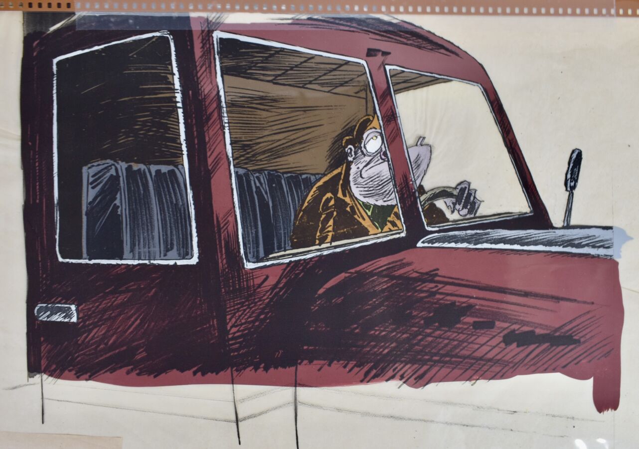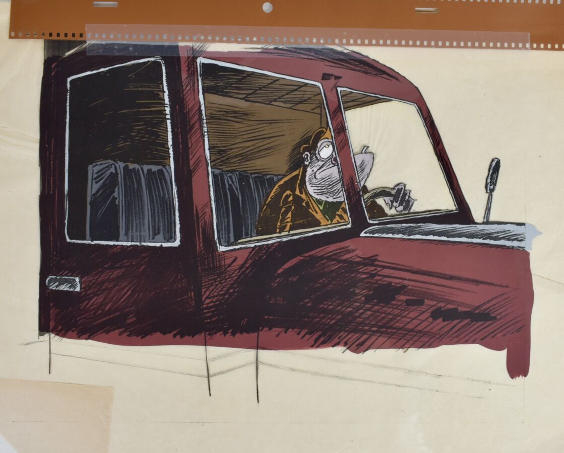 VUILLEMIN (1958), "Camioneur" réalisé pour la série animée Les Sales Blagues de l'Écho, gouache sur celluloïd, numéroté, 30 x 41 cm.