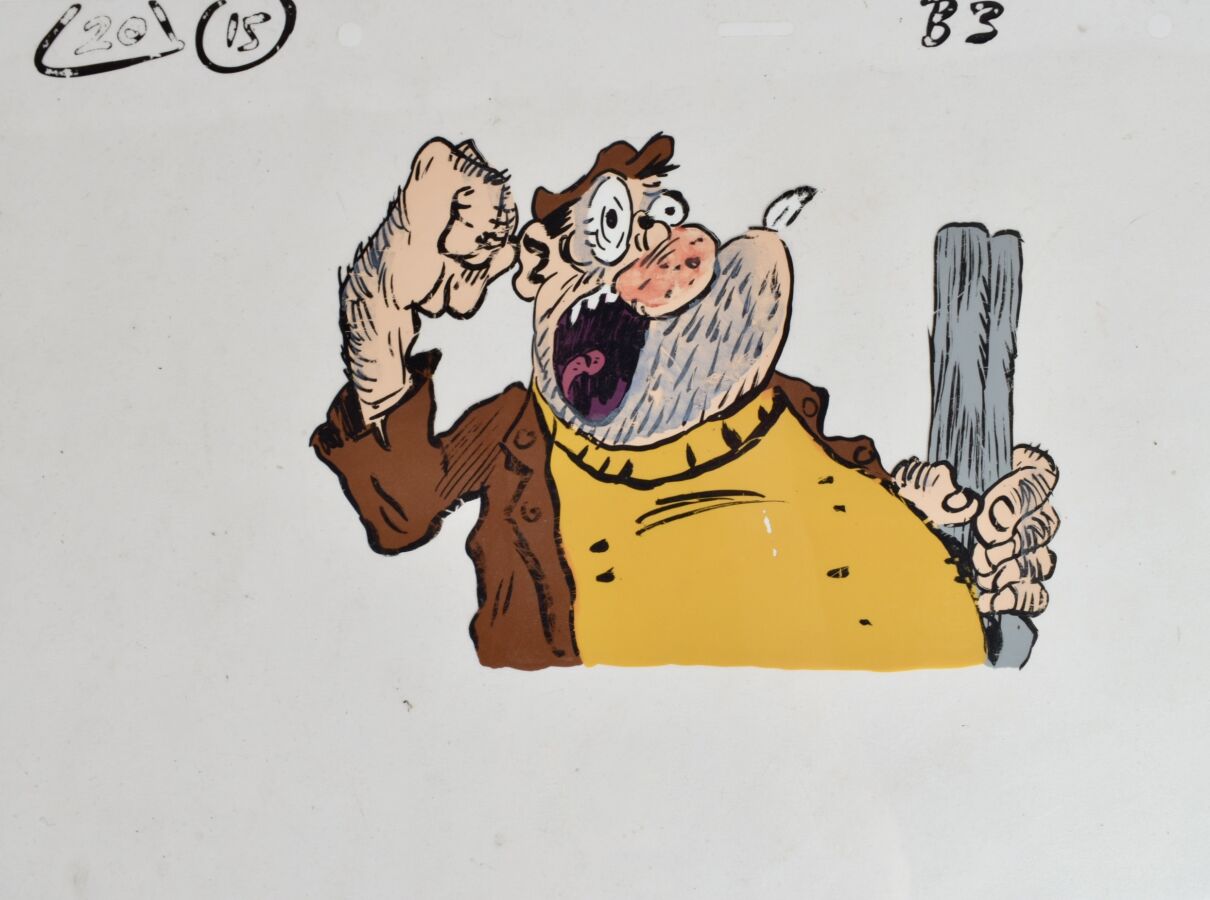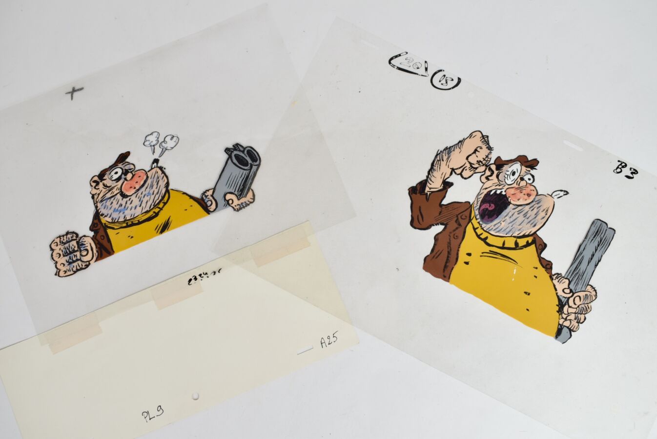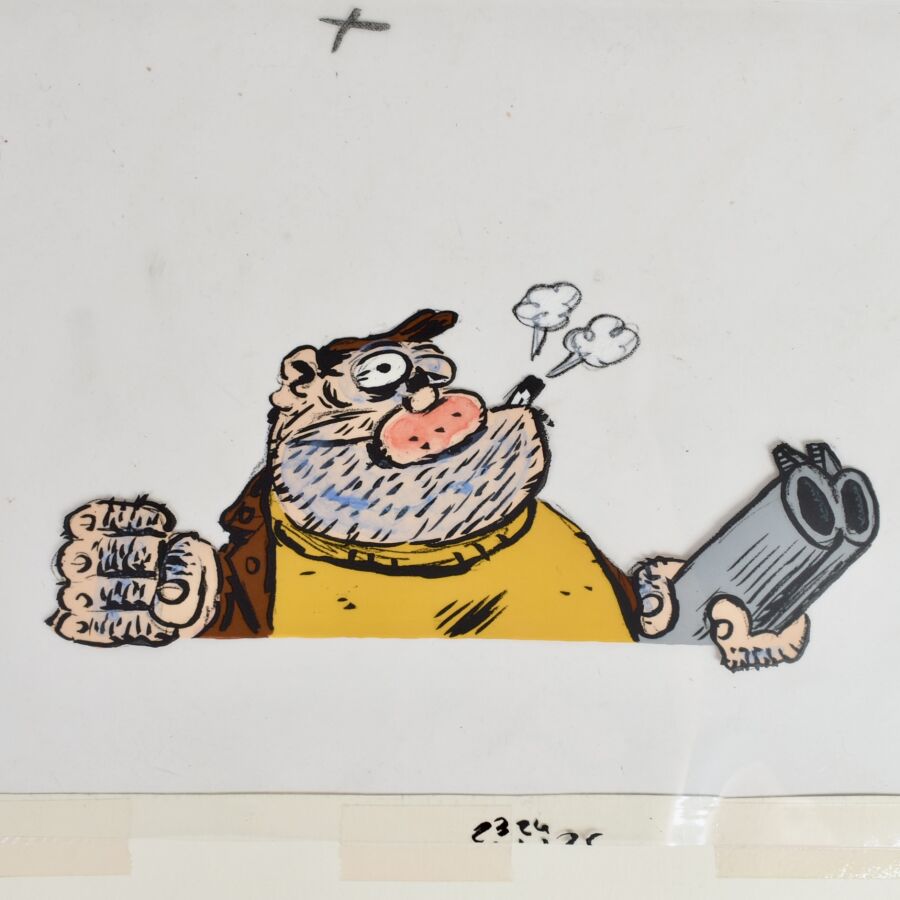 VUILLEMIN (1958), "Chasseur au fusil" réalisé pour la série animée Les Sales Blagues de l'Écho, dessin à la gouache sur celluloïde, 21 x 29.5 cm.
