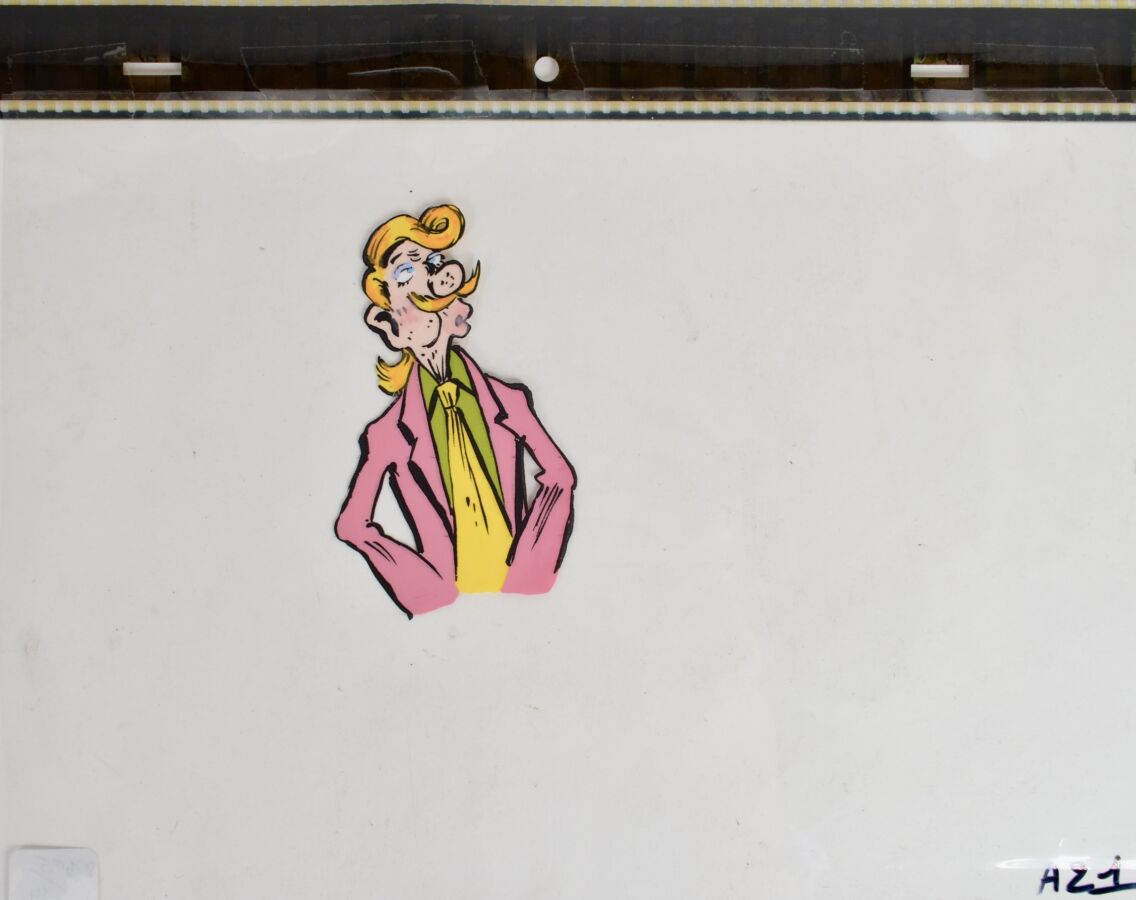 VUILLEMIN (1958), "Dandy" réalisé pour la série animée Les Sales Blagues de l'Écho, gouache sur celluloïd, numéroté, 22.5 x 30.5 cm.