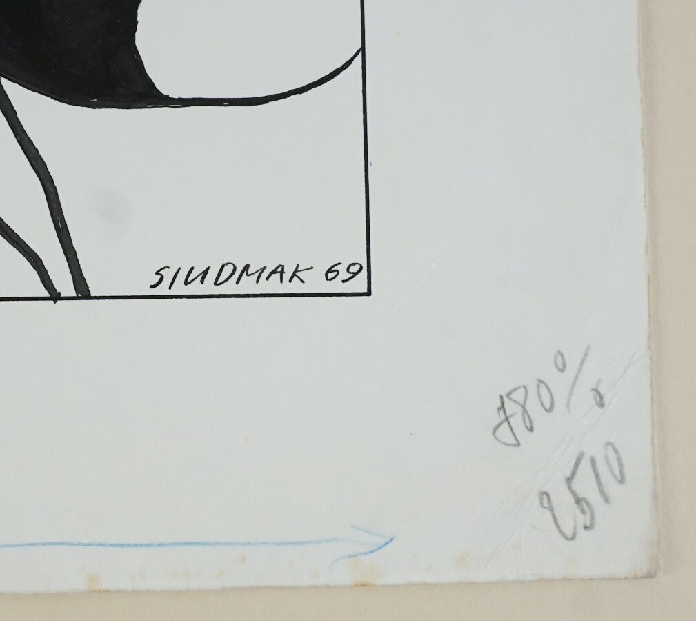 Wojciech SIUDMAK (1942), "Composition aux visages et à la cigarette" 69, dessin à l'encre et au crayon gris sur papier, signé et daté en bas à droite, 31.5 x 24 cm (annotations, pliures).