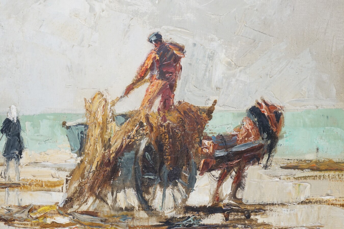 Yves BORE-MAHE (?-1998), "Les ramasseurs de goémon" huile sur toile signée en bas à gauche, 65 x 92 cm.