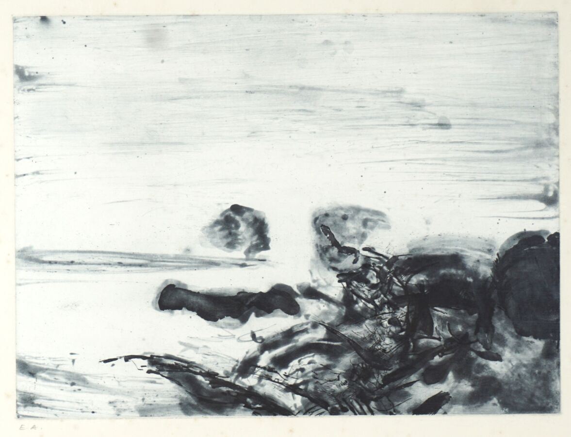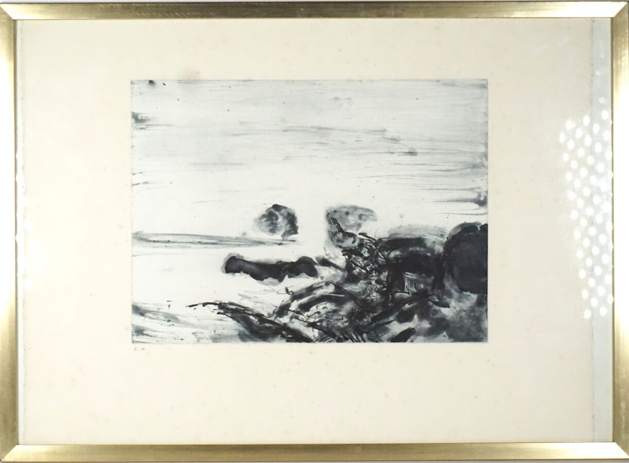 ZAO WOU-KI (1921-2013), "Composition" circa 1973, gravure, justifiée E.A (épreuve d'artiste) en bas à gauche au crayon, non signée, Dim. 30 x 41,5 cm (à la cuvette).