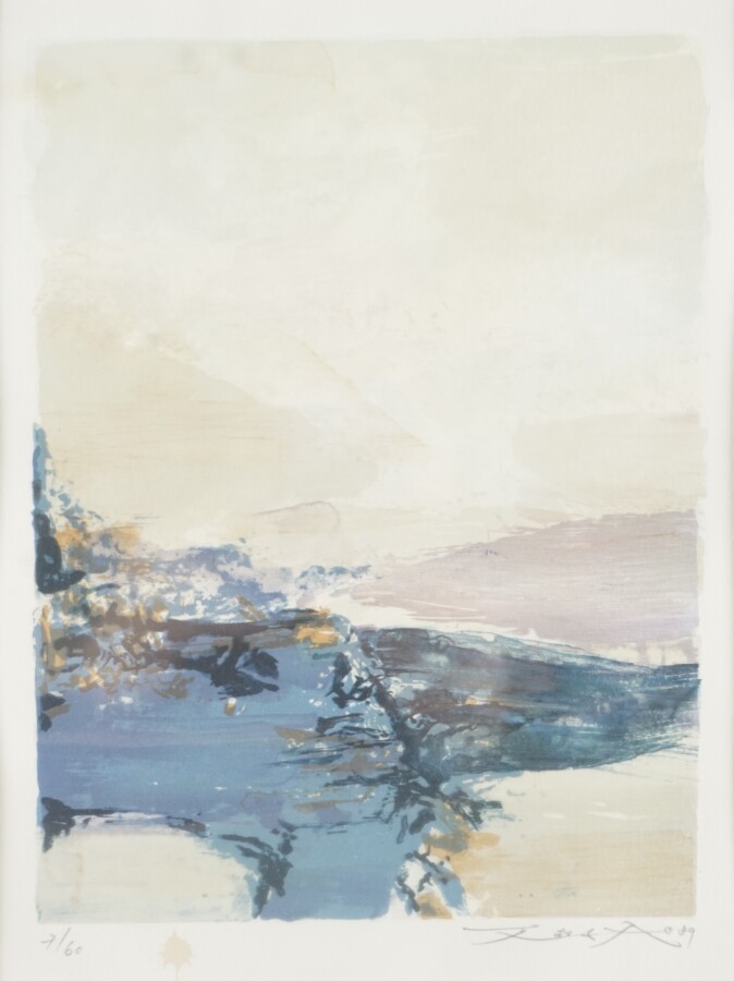 ZAO Wou-Ki (1921-2013), "Sans titre" 89, carte de voeux, lithographie, justifiée 7/60 en bas à gauche et signée et datée en bas à droite, 24 x 18.3 cm (à vue).