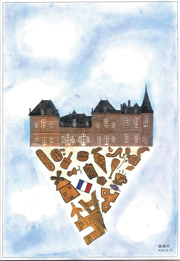 Zitian TIAN, "Château en mouvement", dessin et aquarelle sur papier, 27 x 39 cm. * Cocréation avec Malgorzata Paszko.