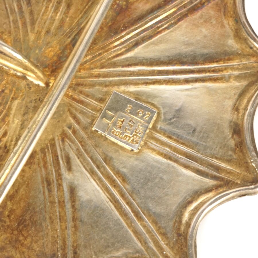 ZOLOTAS : Broche - Pendentif "Feuille" en argent (950/oo), signée au revers, Dim. 6.3 x 4.7 cm. Poids brut : 7.9 g environ.