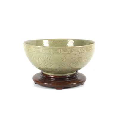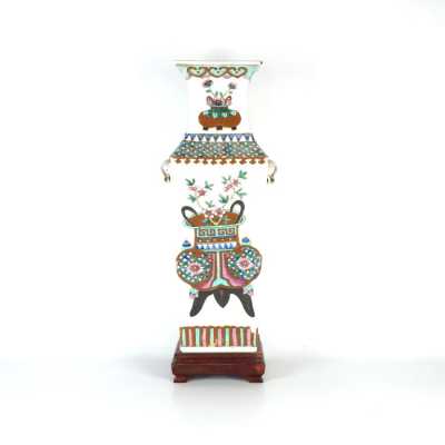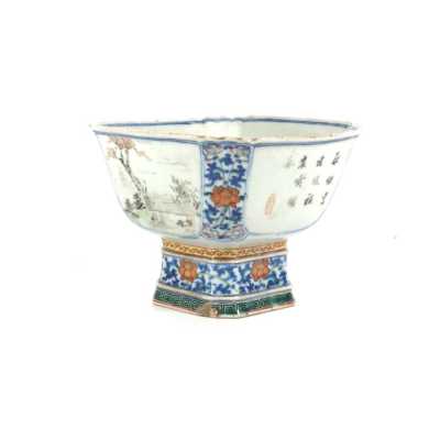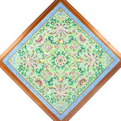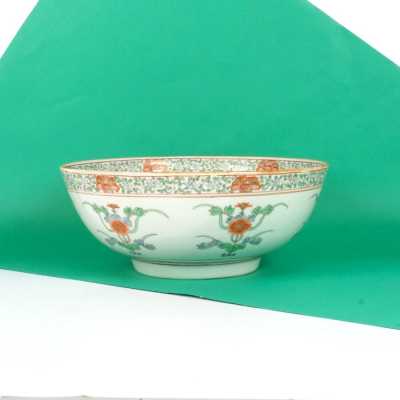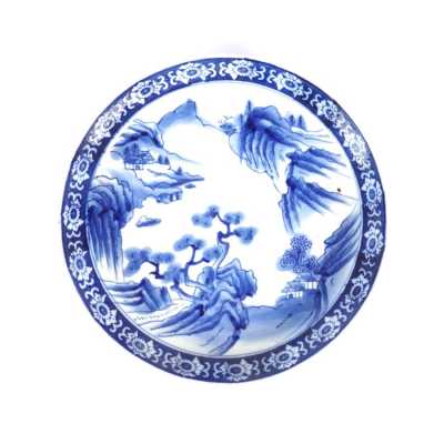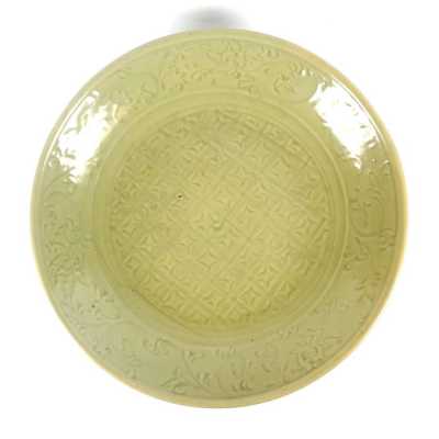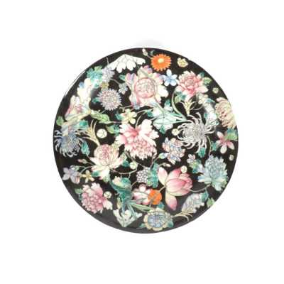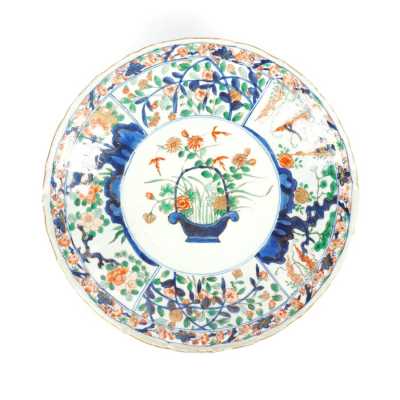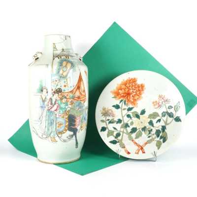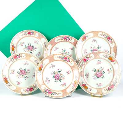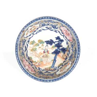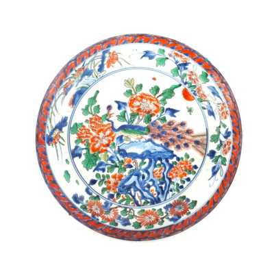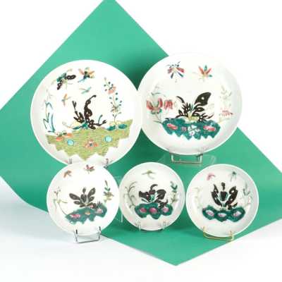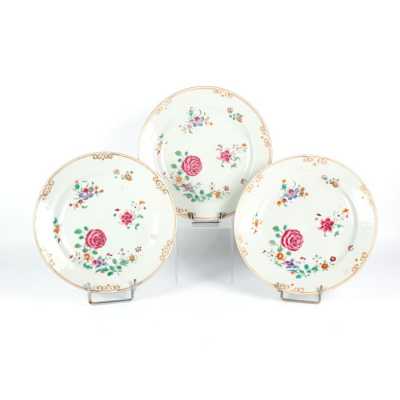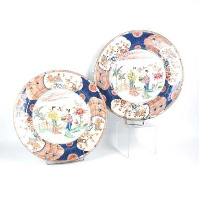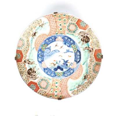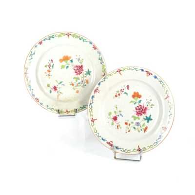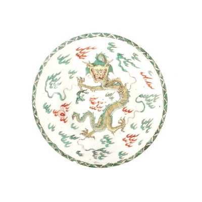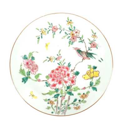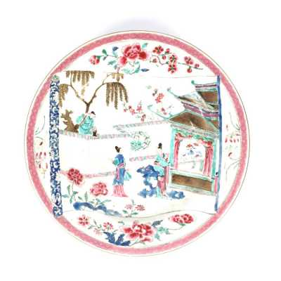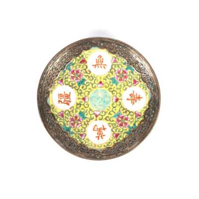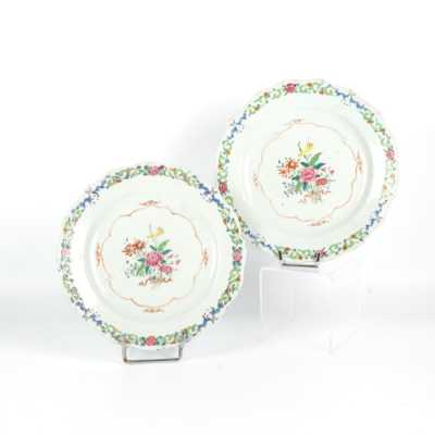 On joint une assiette en porcelaine émaillée à décor de lambrequ...