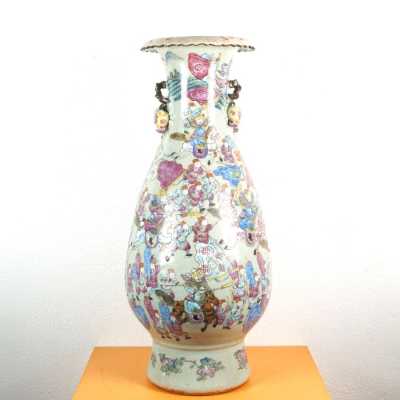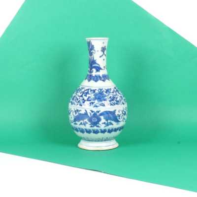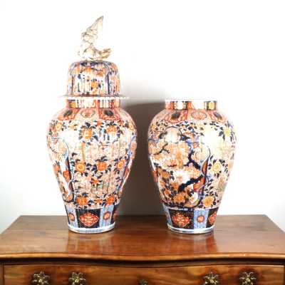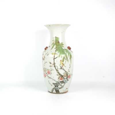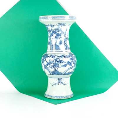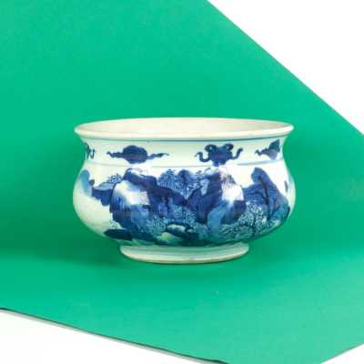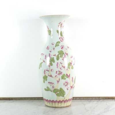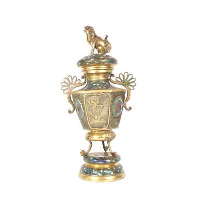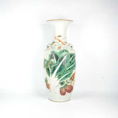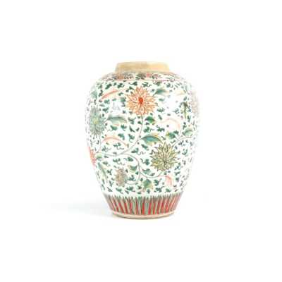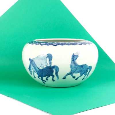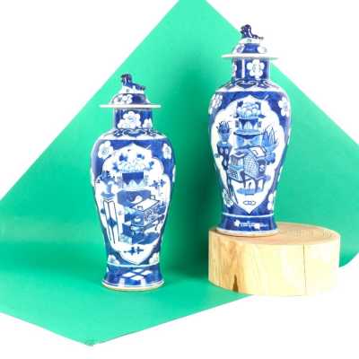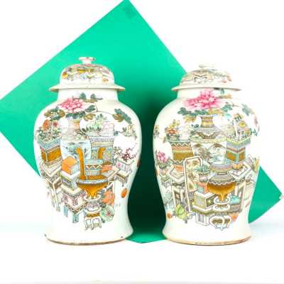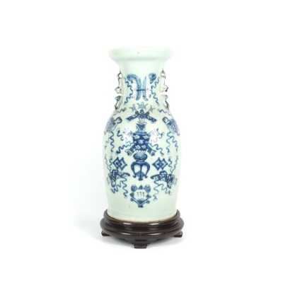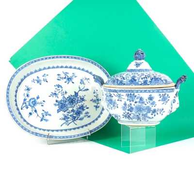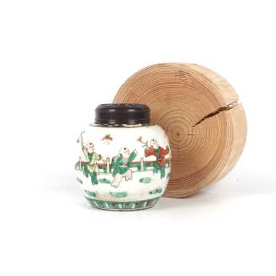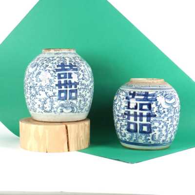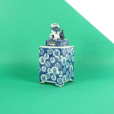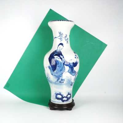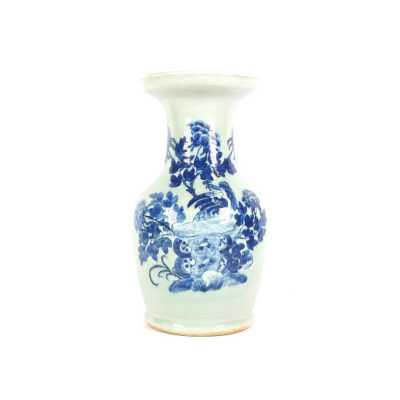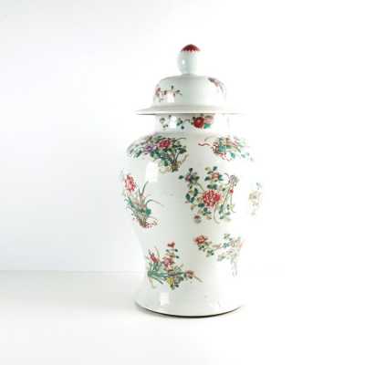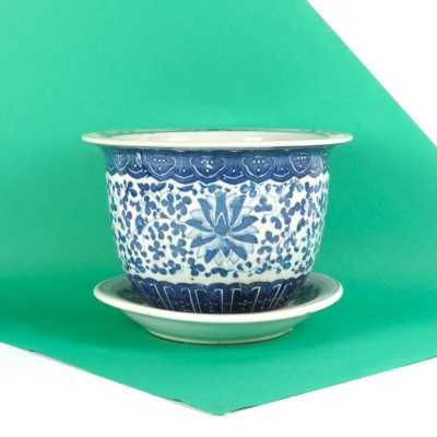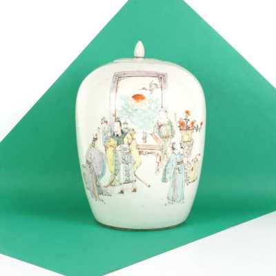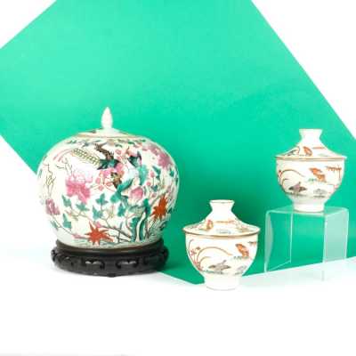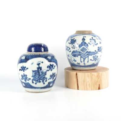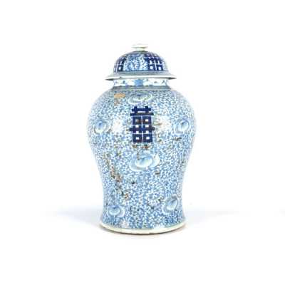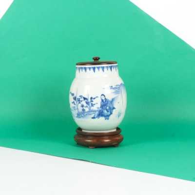 On y joint un couvercle de potiche en porcelaine émaillée bleu poudré (léger éclat).