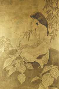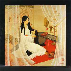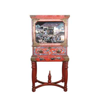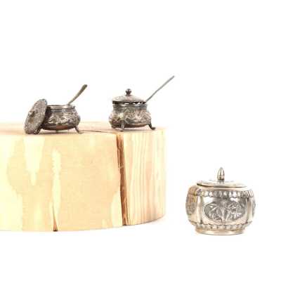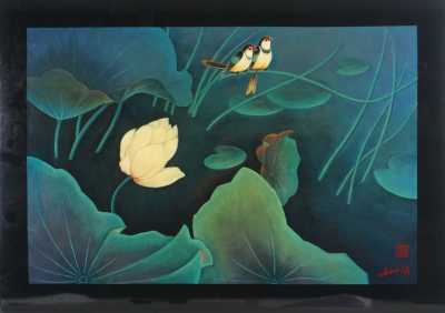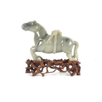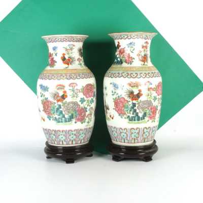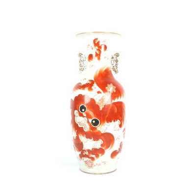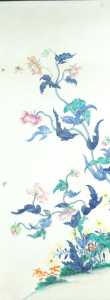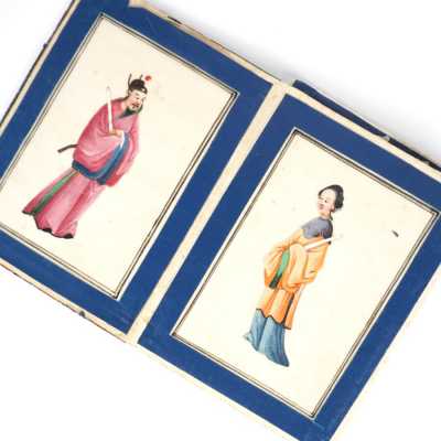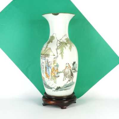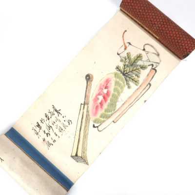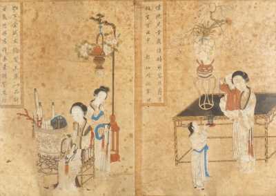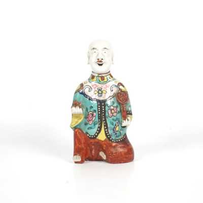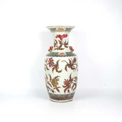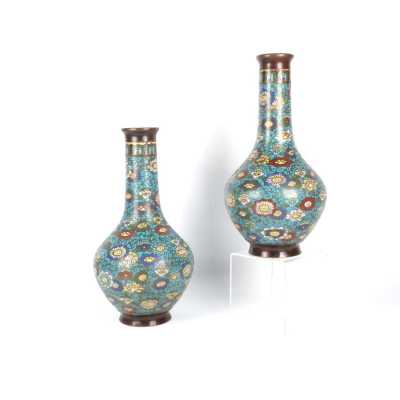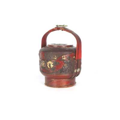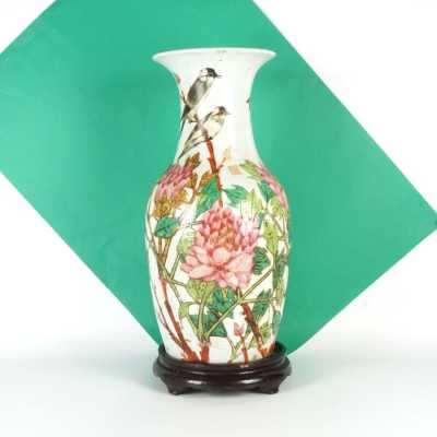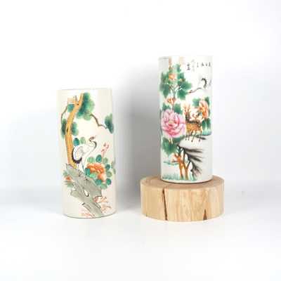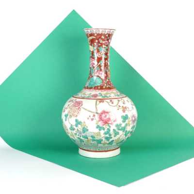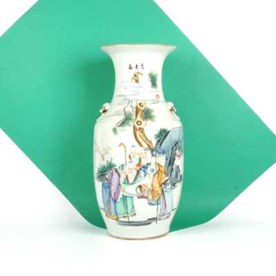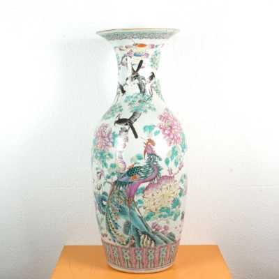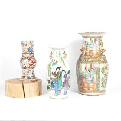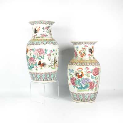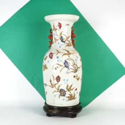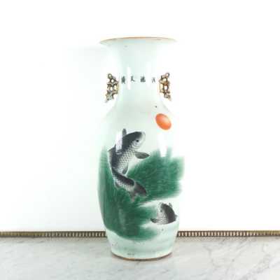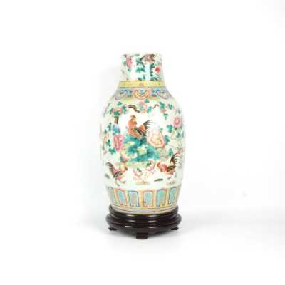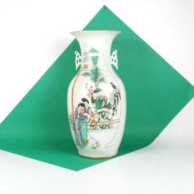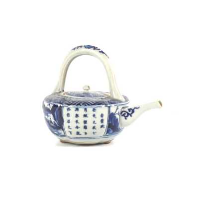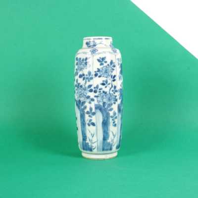 On y joint un couvercle de potiche en porcelaine émaillée bleu poudré (léger éclat).