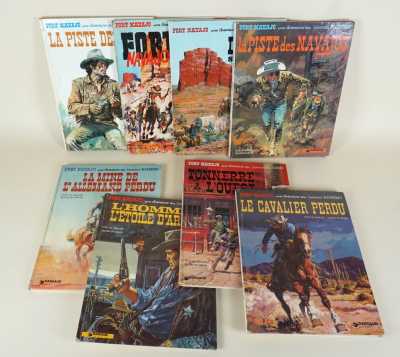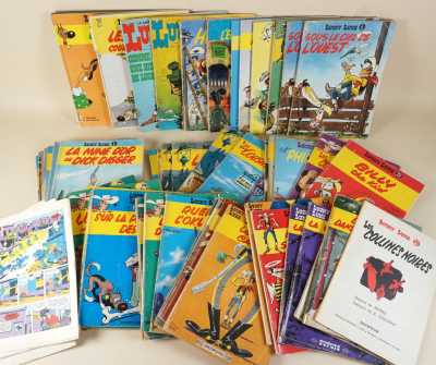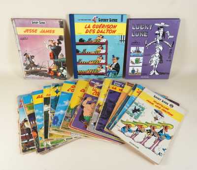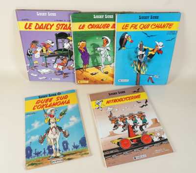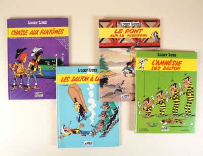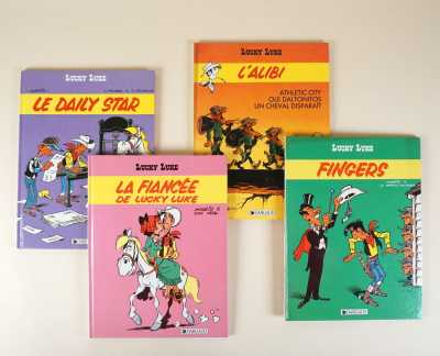 - 4 albums rigides - Dont : Le Daily Star (abimé) - Le Cavalier Blanc (abimé) - Le Fil qui Chante (abimé) - Nitroglycérine (état moyen) - Morris - ed. Dargaud.