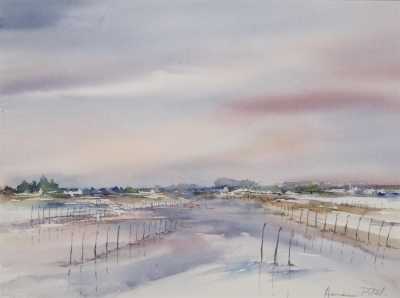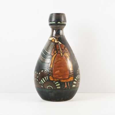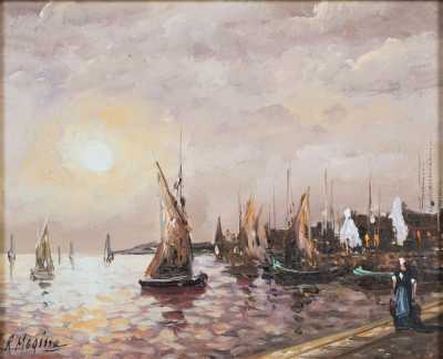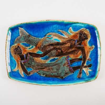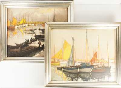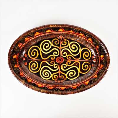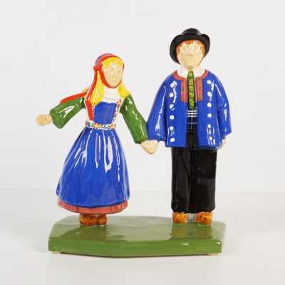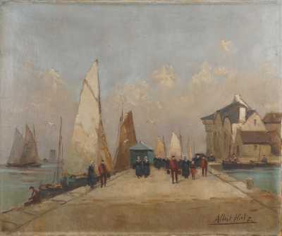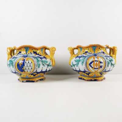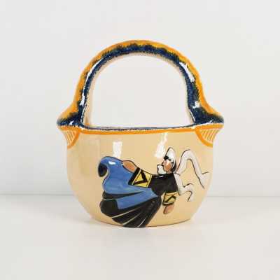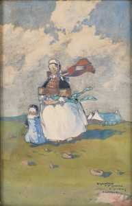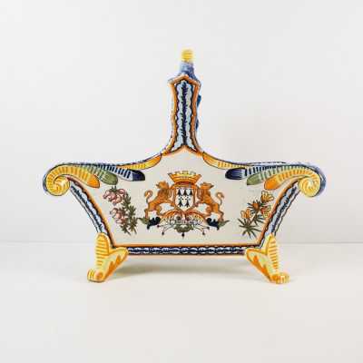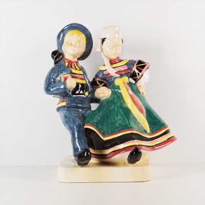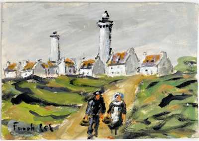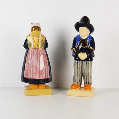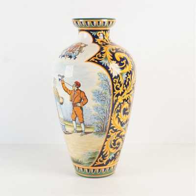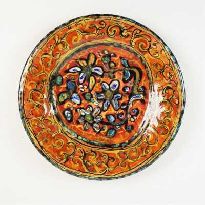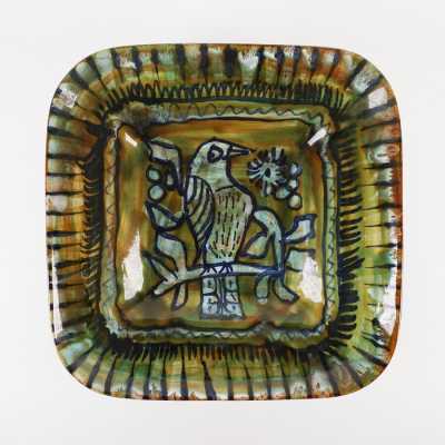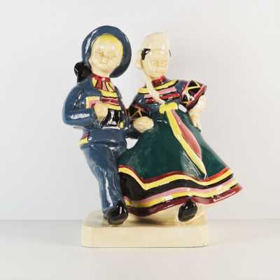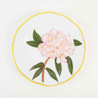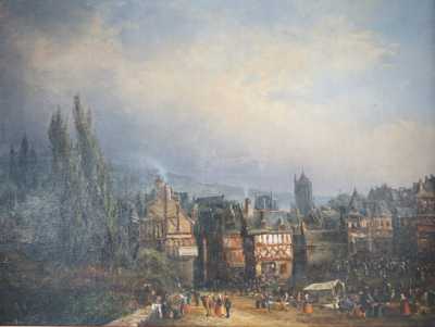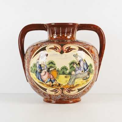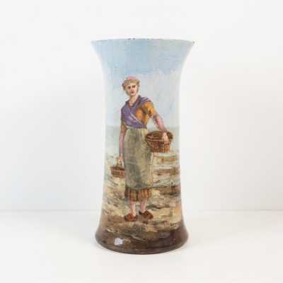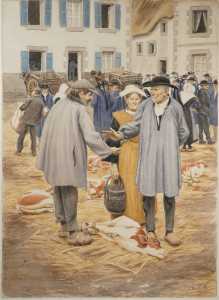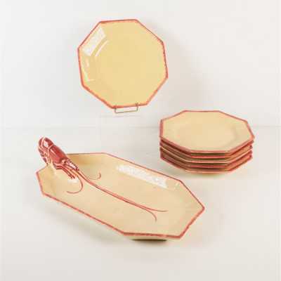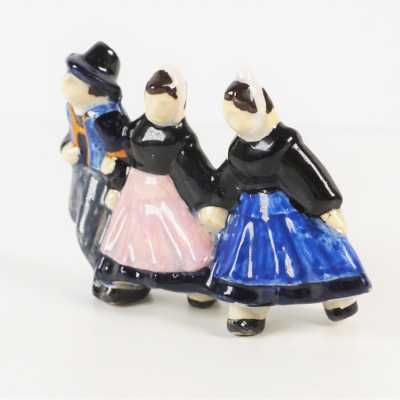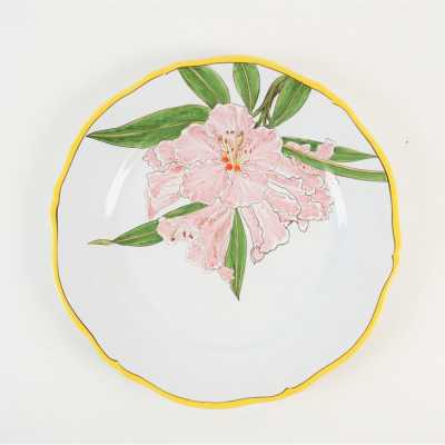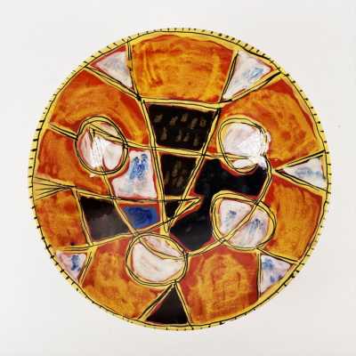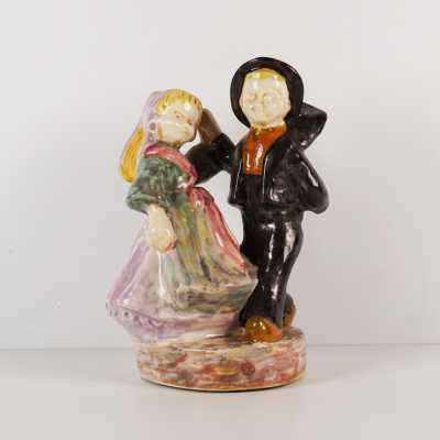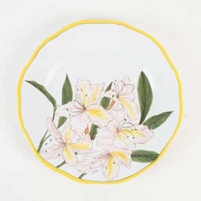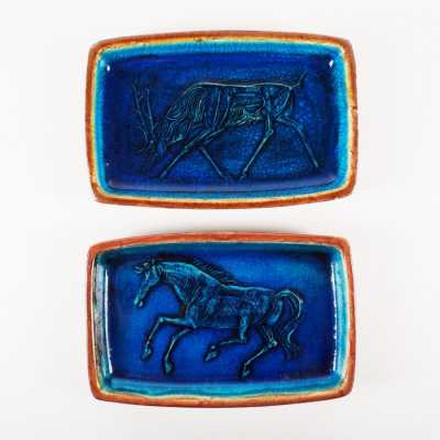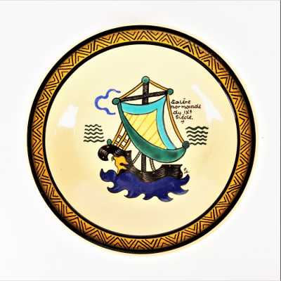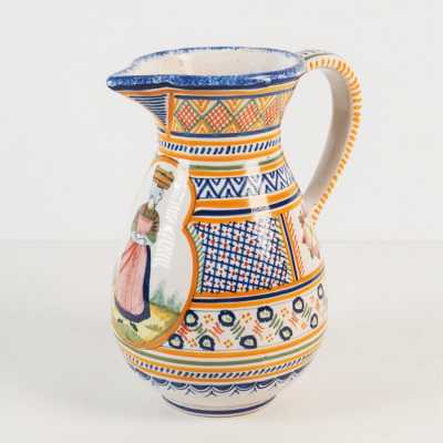 On joint deux plats, l'un à bords festonnées à décor d'une scène de paysannerie su...