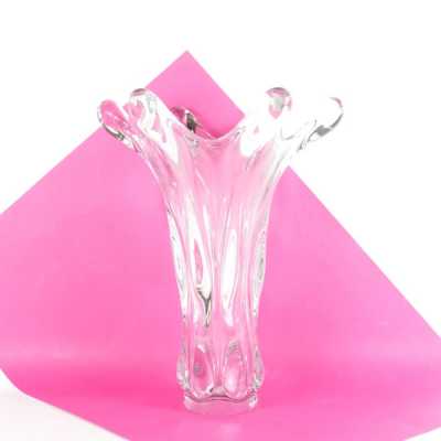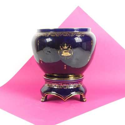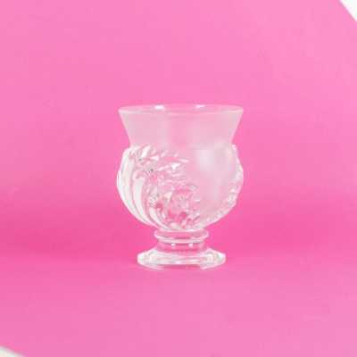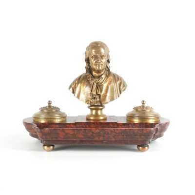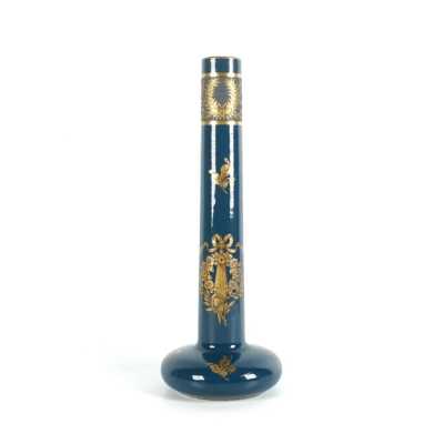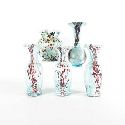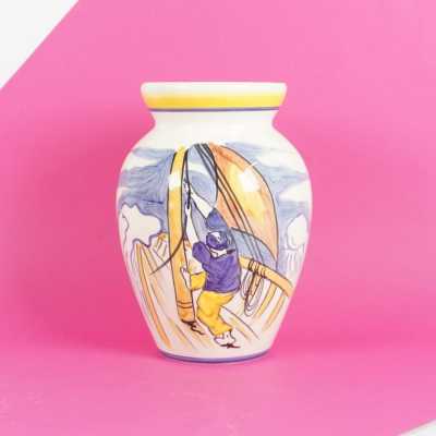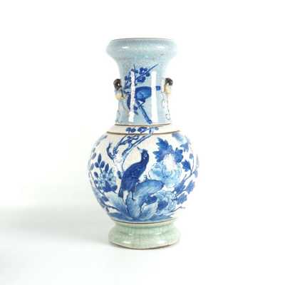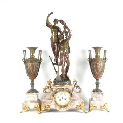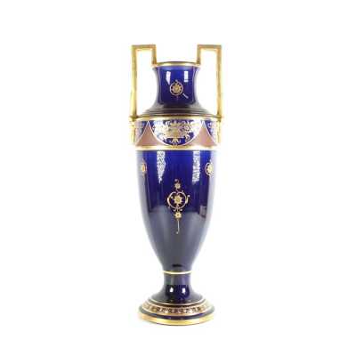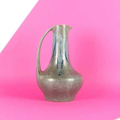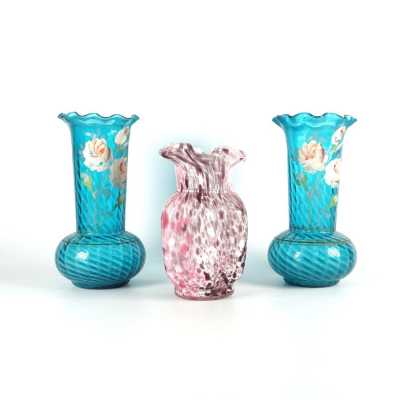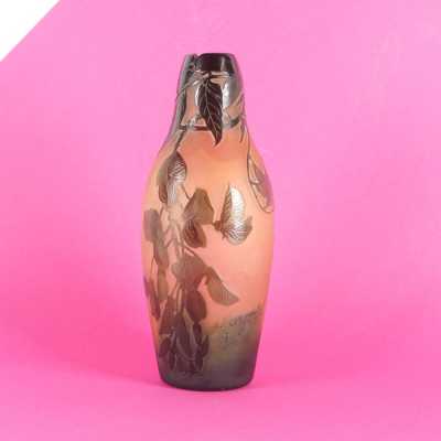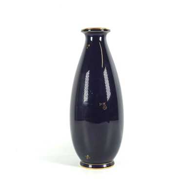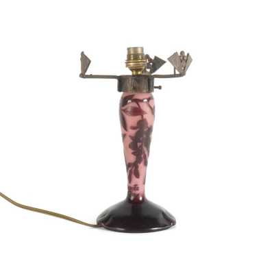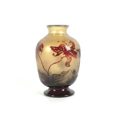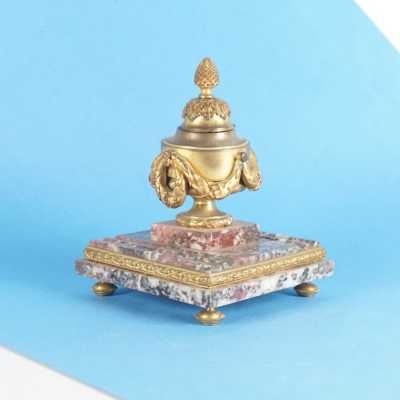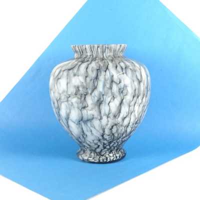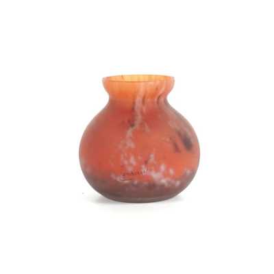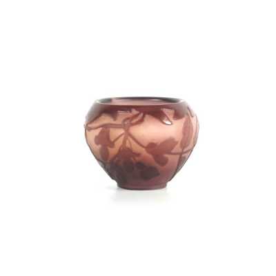 On joint un vase marmoréen dans les tons rose-violine, H. 21 cm.