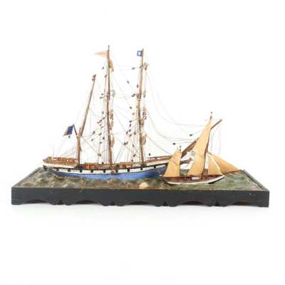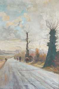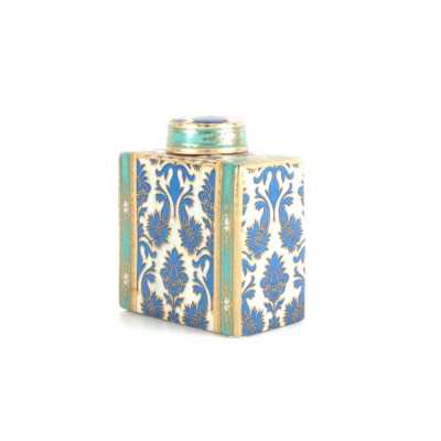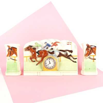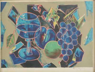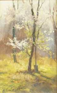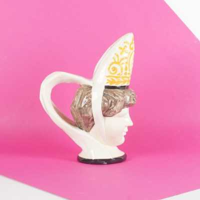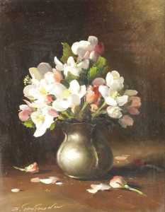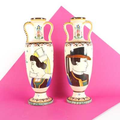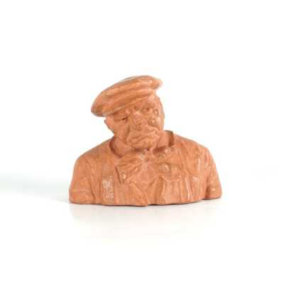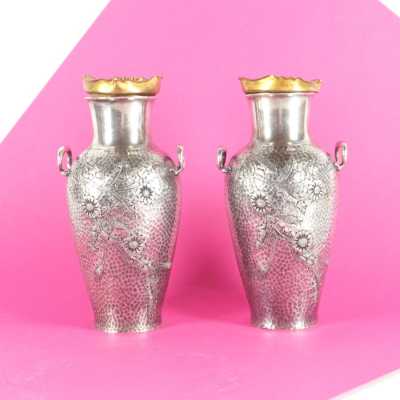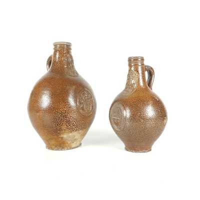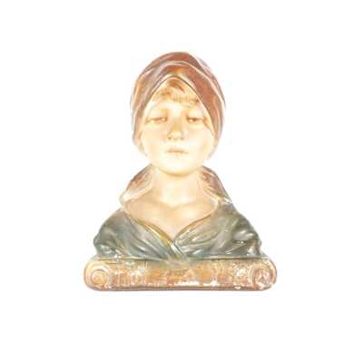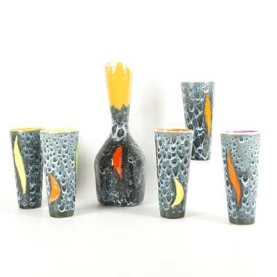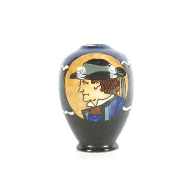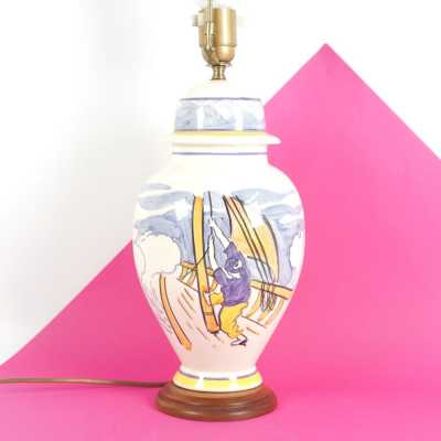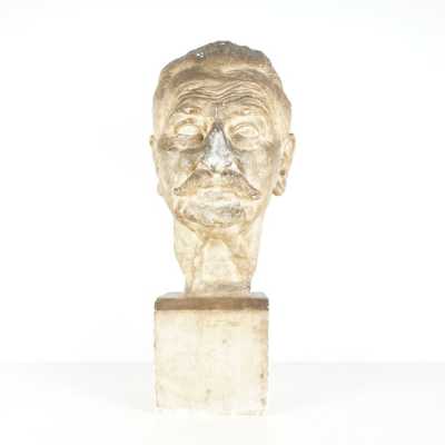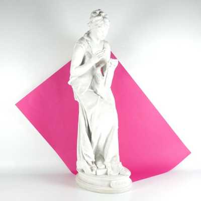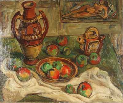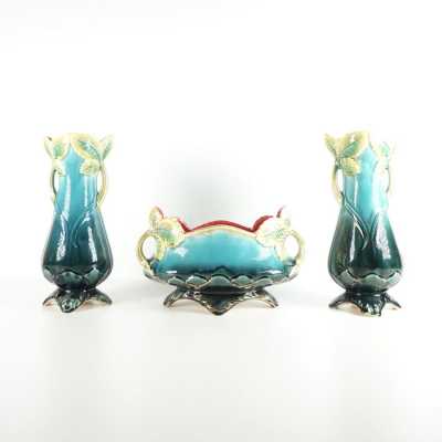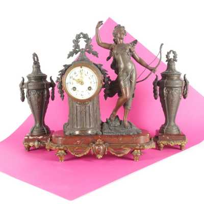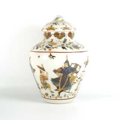 On joint un vase marmoréen dans les tons rose-violine, H. 21 cm.