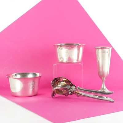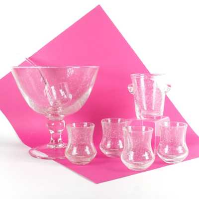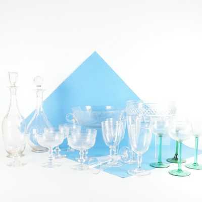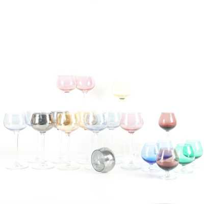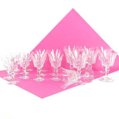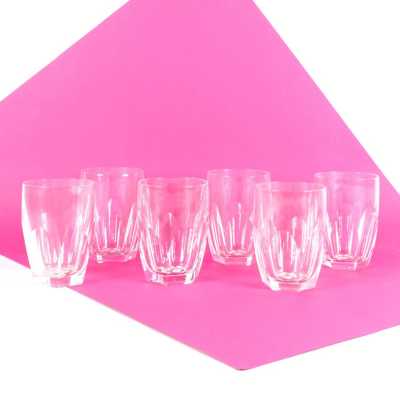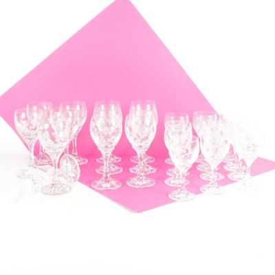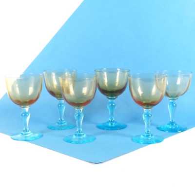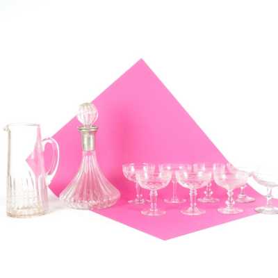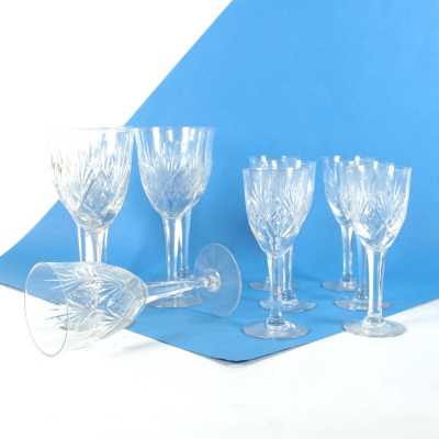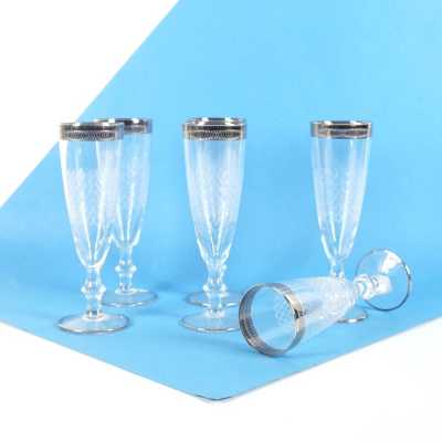 On joint six coupes à champagne à décor d'une frise d'entrelacs gravée, quat...