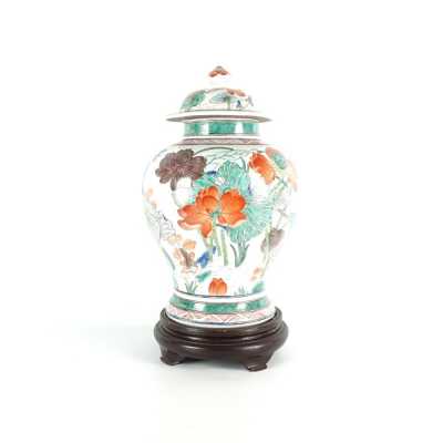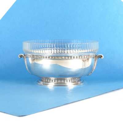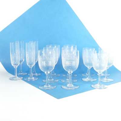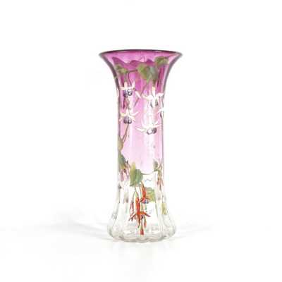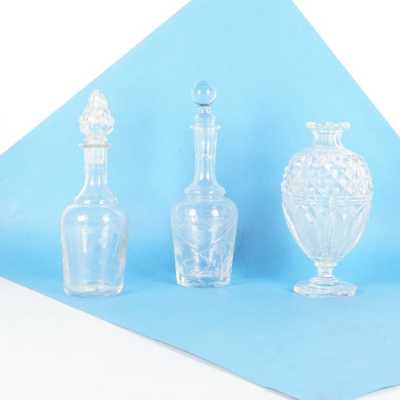 On joint un vase sur piédouche de forme ovoïde en verre taillé, d...
