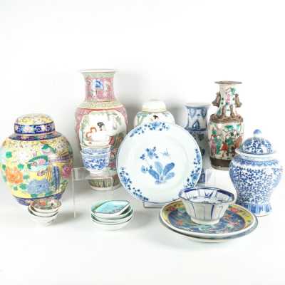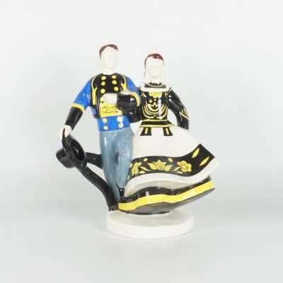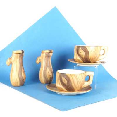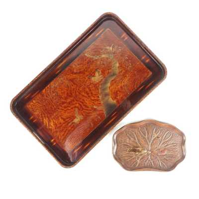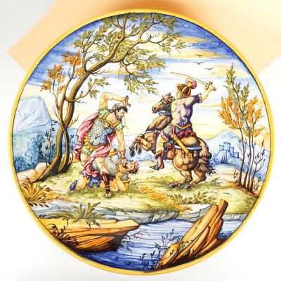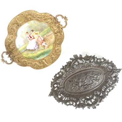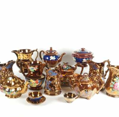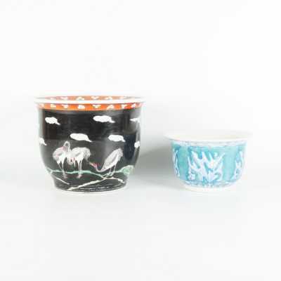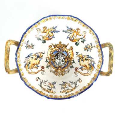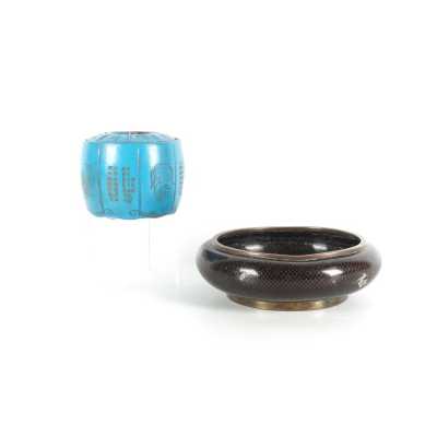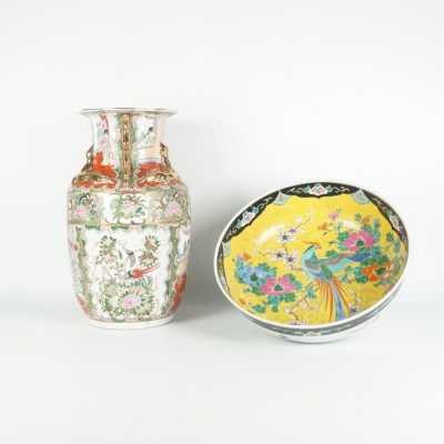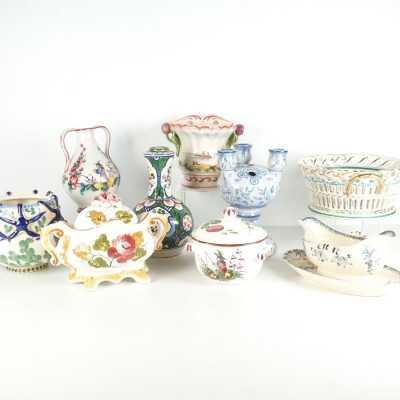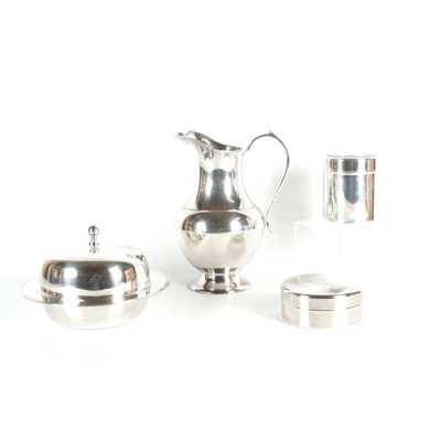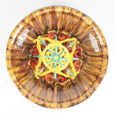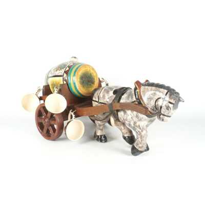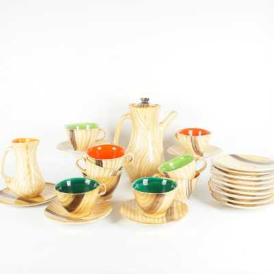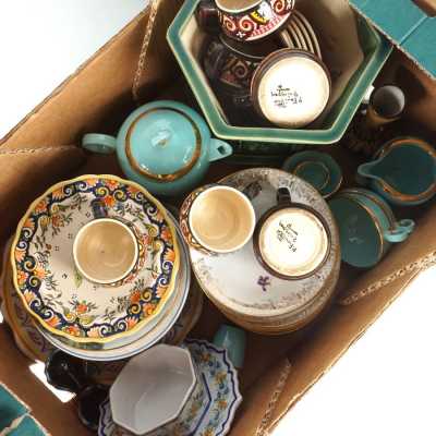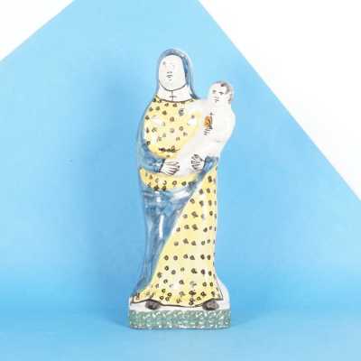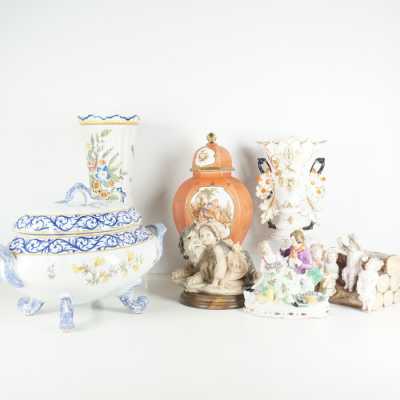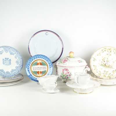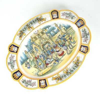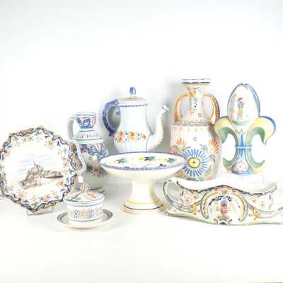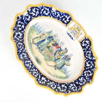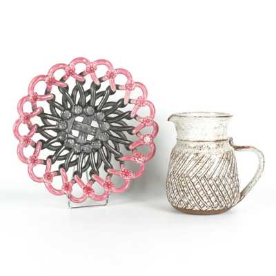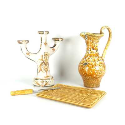 On joint une aiguière en céramique émaillée jaune (H. 33.5 cm) et un plateau à fromage avec son cou...