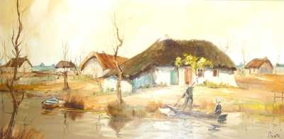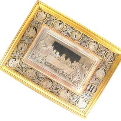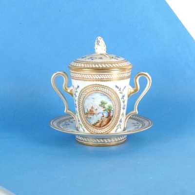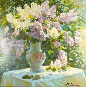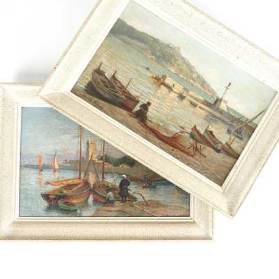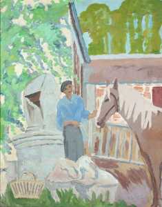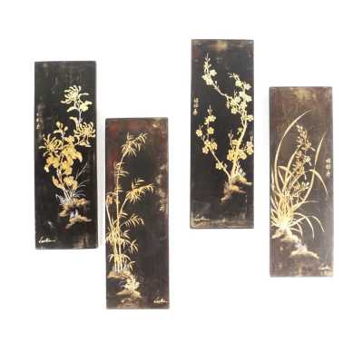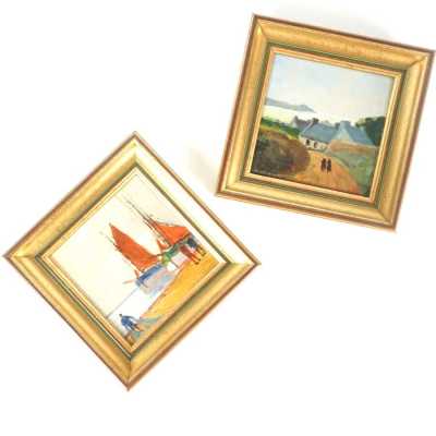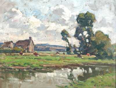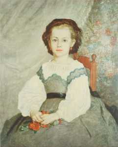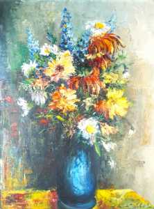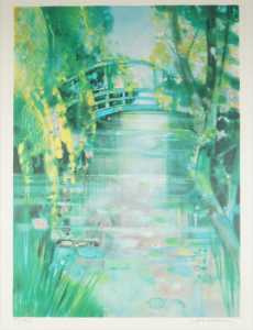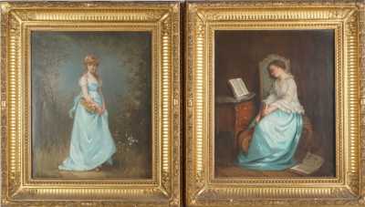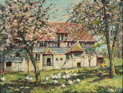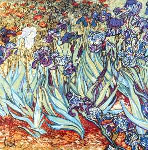 On y joint deux coussins tapissés reprenant "Les tournesols" d'après Vincent VAN GOGH (1853-1890) et "La danseuse" d'après Edgar DEGAS (1834-1917).