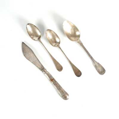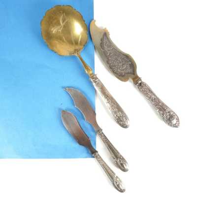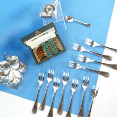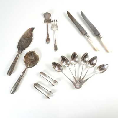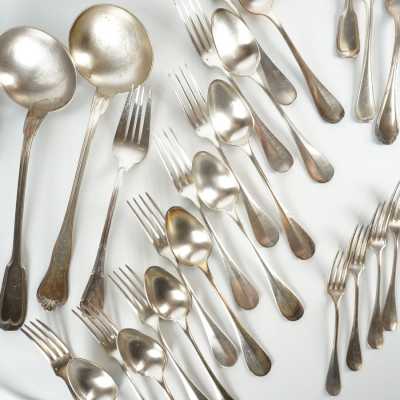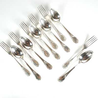 On joint ERCUIS : Ensemble dépareillé en métal comprenant 3 fourchettes, 2 cuillères, 1 couvert de serv...