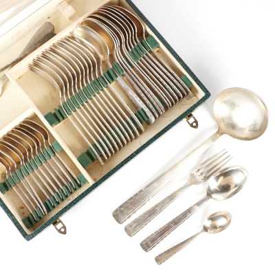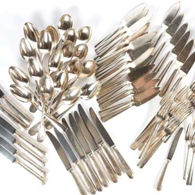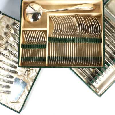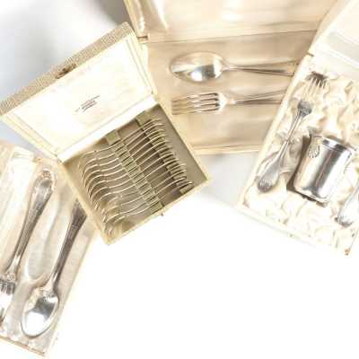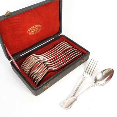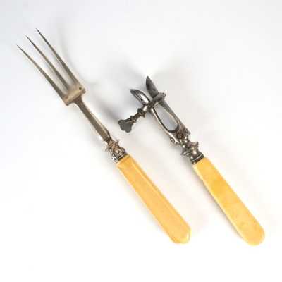On y joint 1 grande cuillière et 2 fourchettes en métal argenté rapportées.