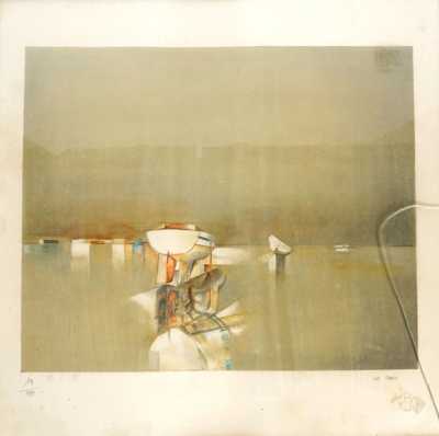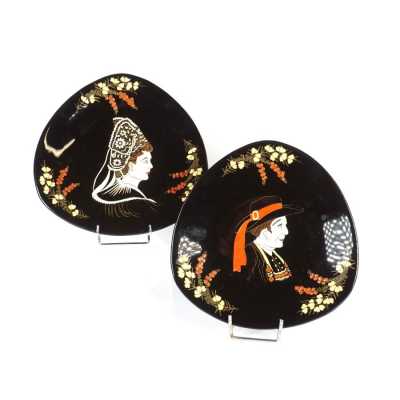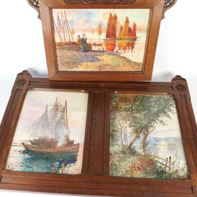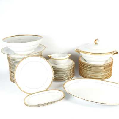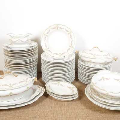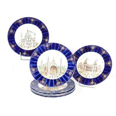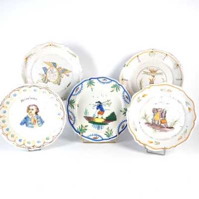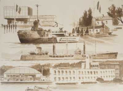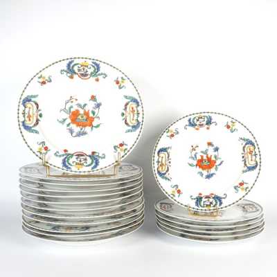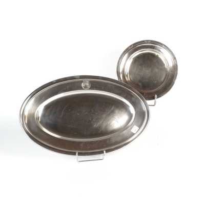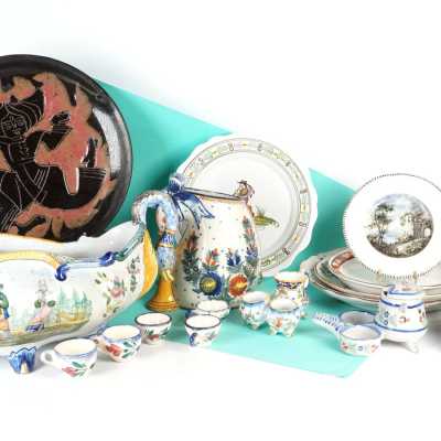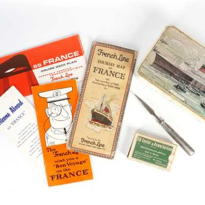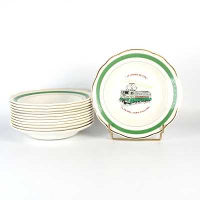 On joint une assiette de la Compagnie Maritime sud-atlantique à décor art déco en bordure, D. 20 cm
