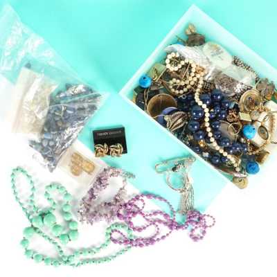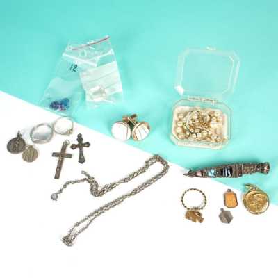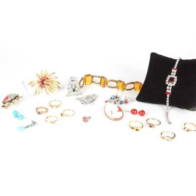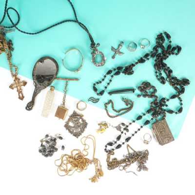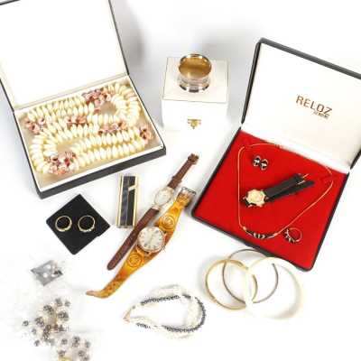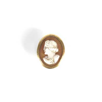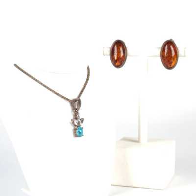 - des clips d'oreilles ovales agrémentés d'un cabochon d'ambre, H. 2 cm.