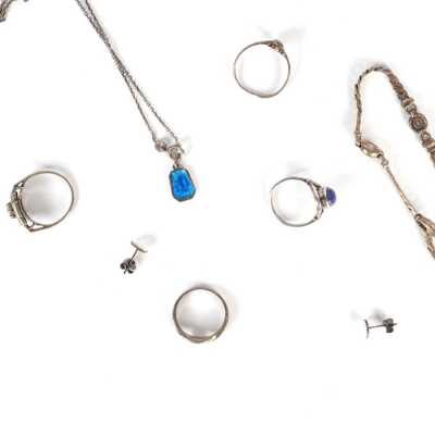 - une chaine maille serpent et un pendentif serti d'une pierre turquoise et de pierres imitant le diamant.