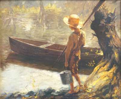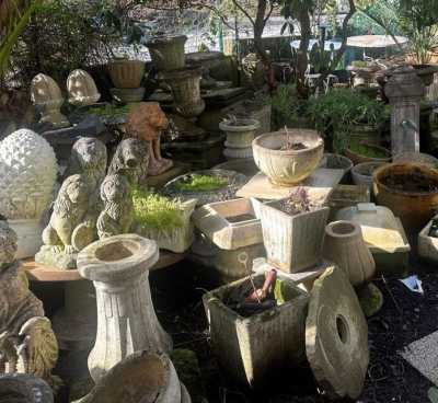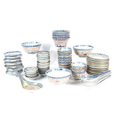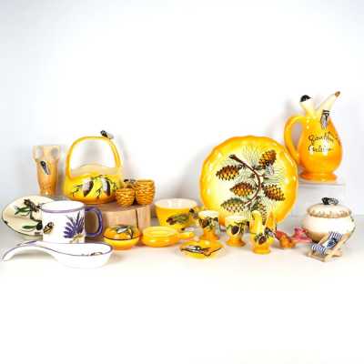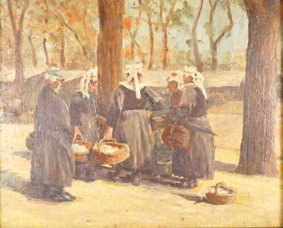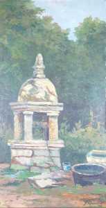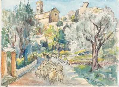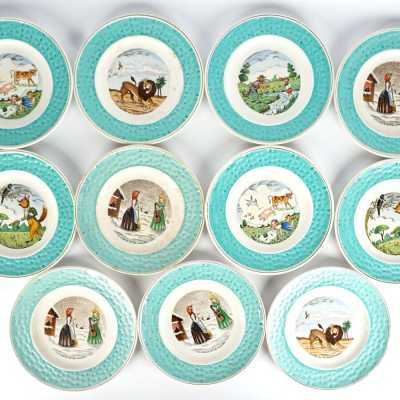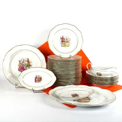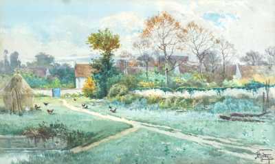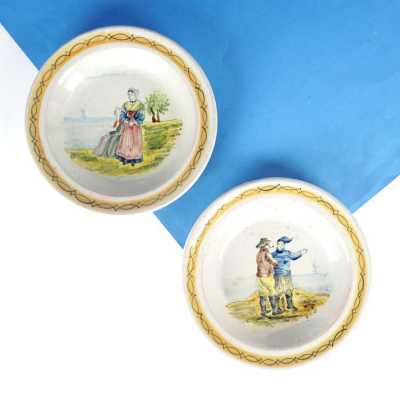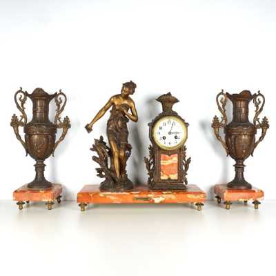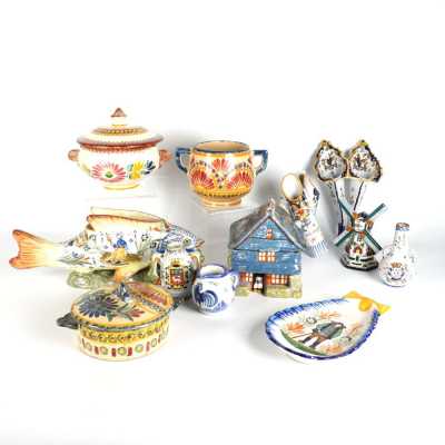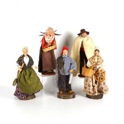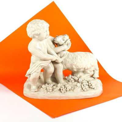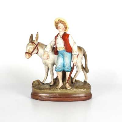 On y joint une bergère et ses moutons en argile (manques et usures).