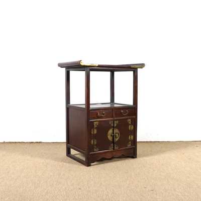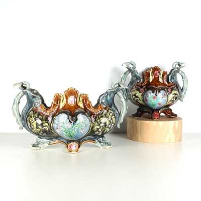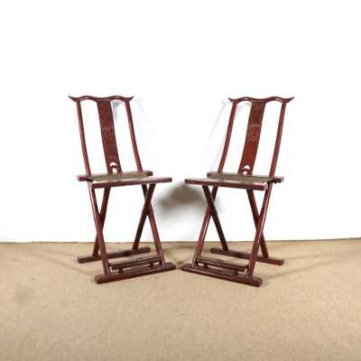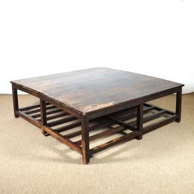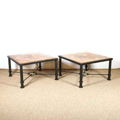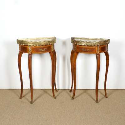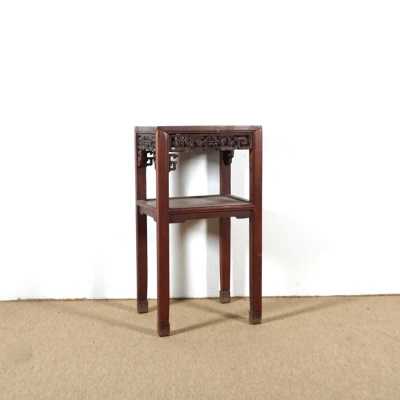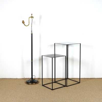 - Deux petites sellettes gigognes, plateau carré, H. 74 cm et 54 cm.