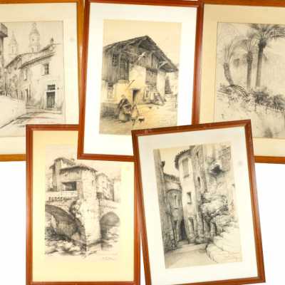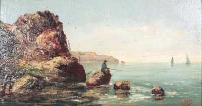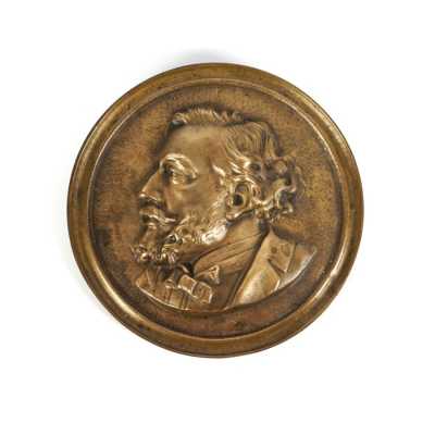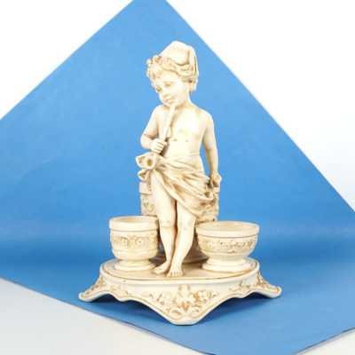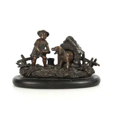 Présenté avec un plumier moderne à décor de cavalier, L. 20.5 cm.