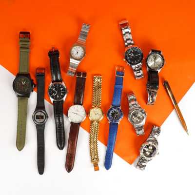 - SK : Montre bracelet en acier, boîtier rond, cadran gris anthracite signé, chiffres arabes pour les h...