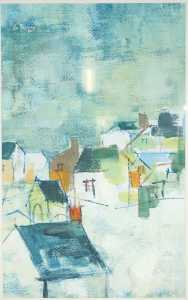 - Petite console murale en bois mouluré laqué bleu-vert, ouvrant à un tiroir en ceinture, Dim. 73 x 70 cm.