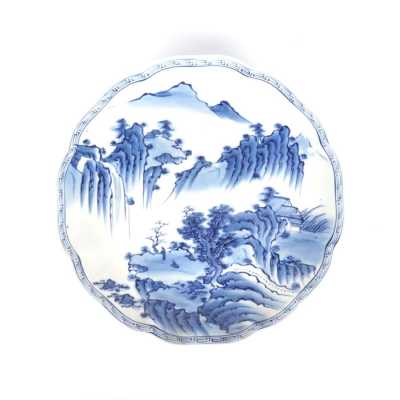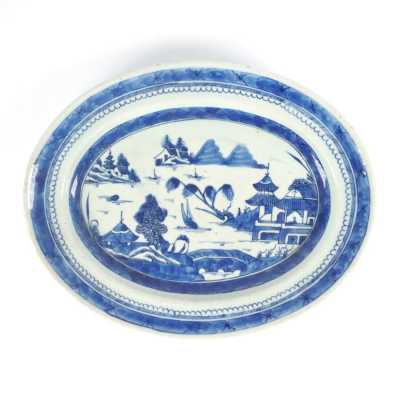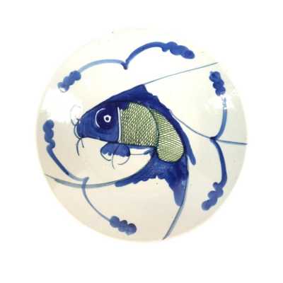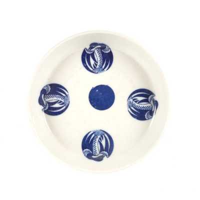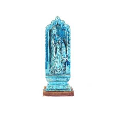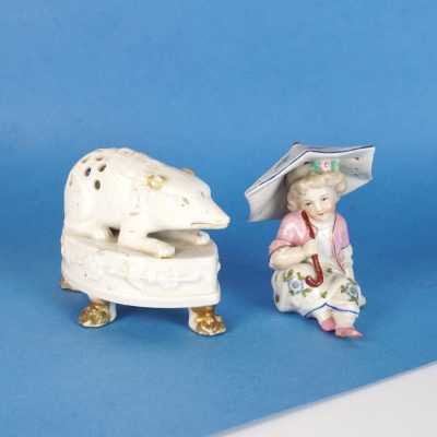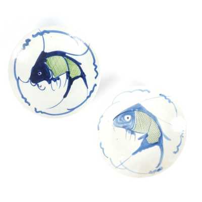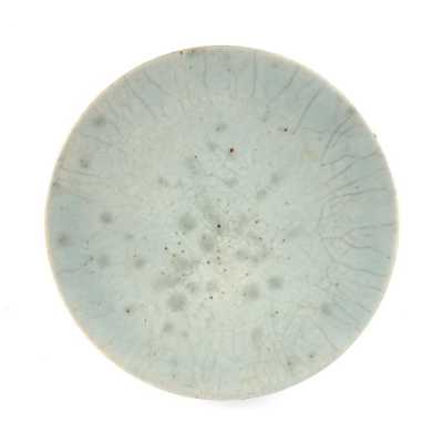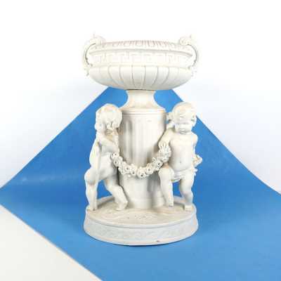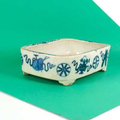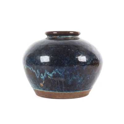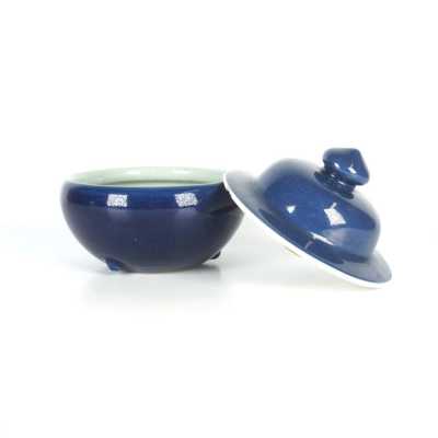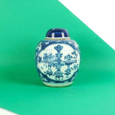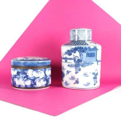 On y joint un couvercle de potiche en porcelaine émaillée bleu poudré (léger éclat).