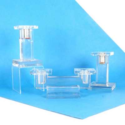 On joint une paire de bougeoirs de forme quadrangulaire dans le même goût, non signés (éclats...