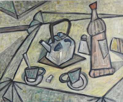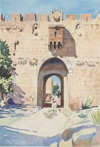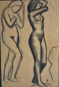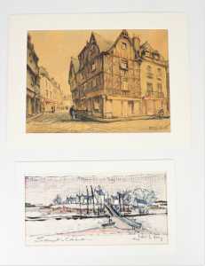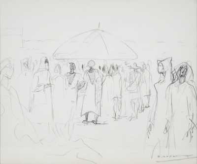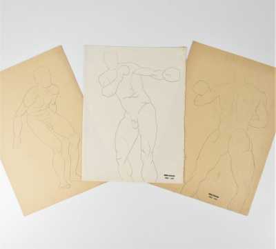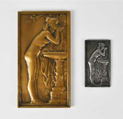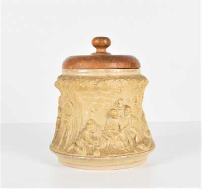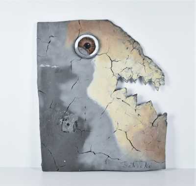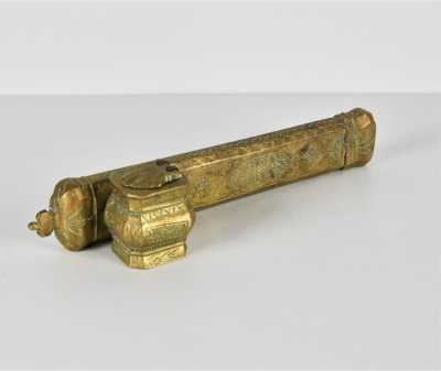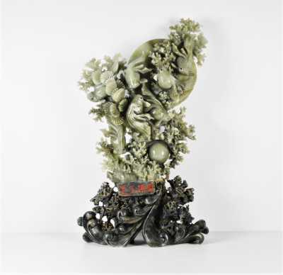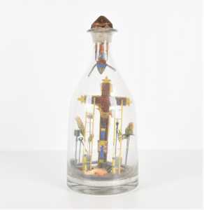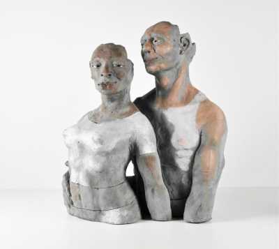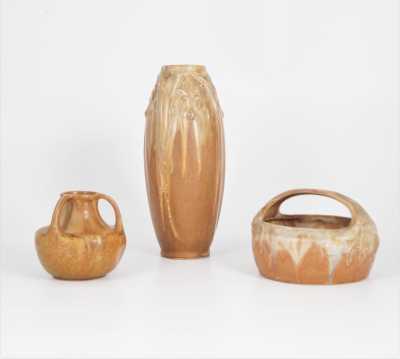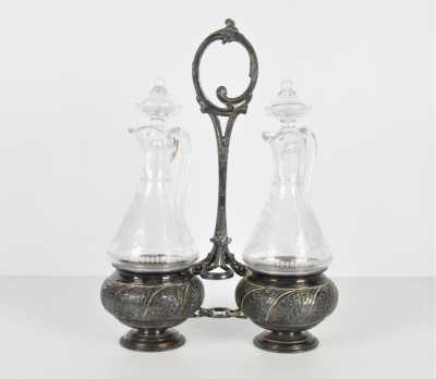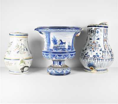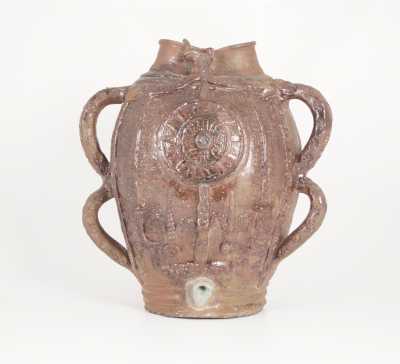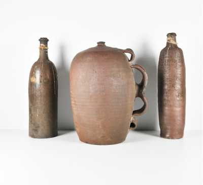 On joint deux bouteilles en grès de la même origine, H. 40.5 cm (usures).