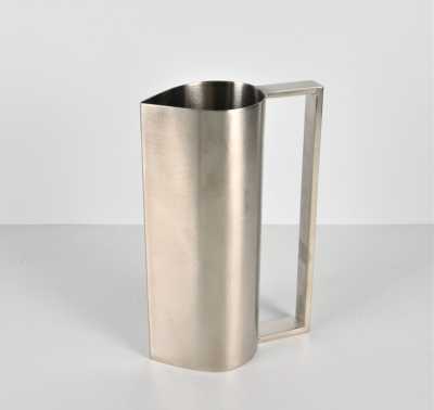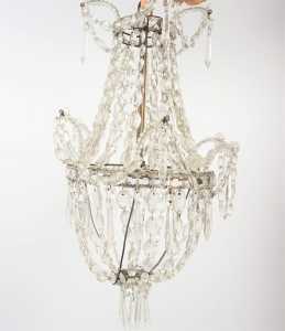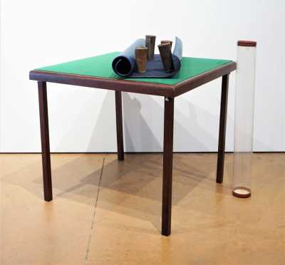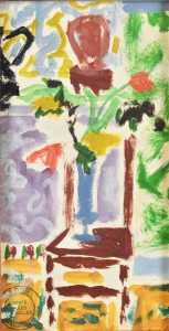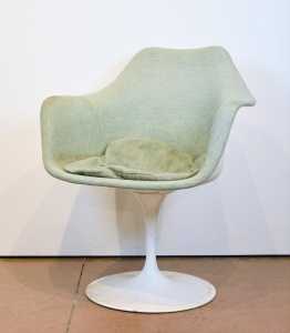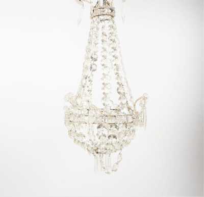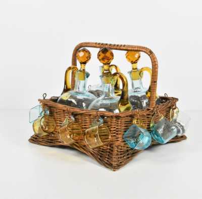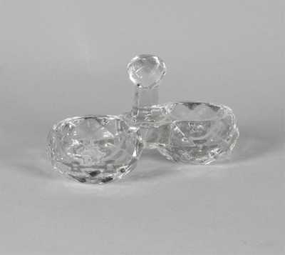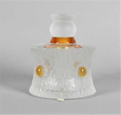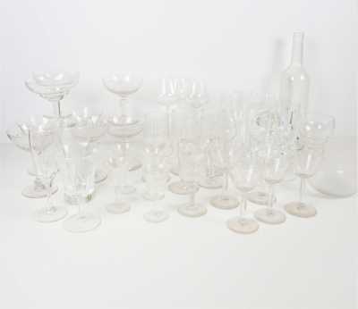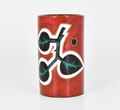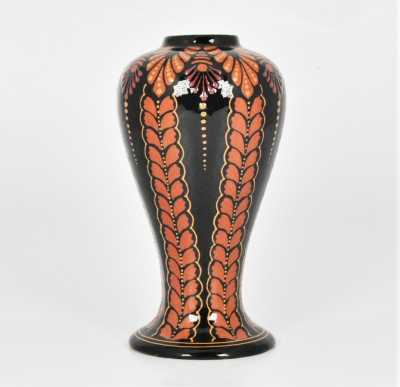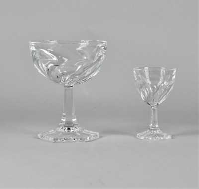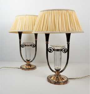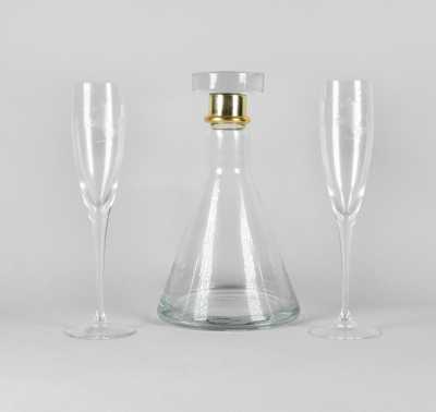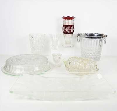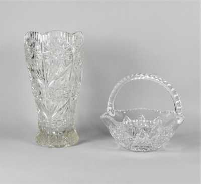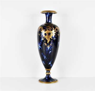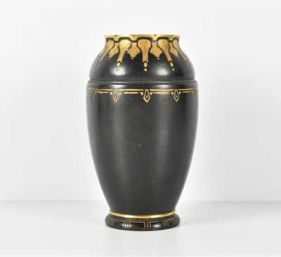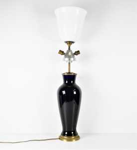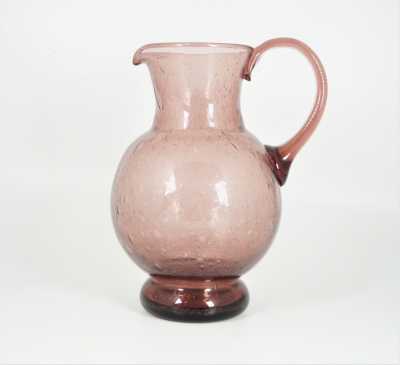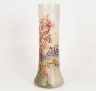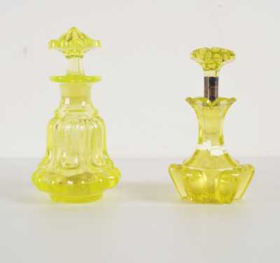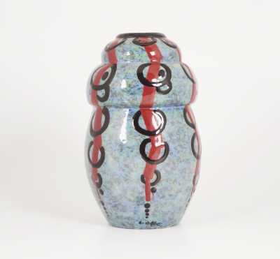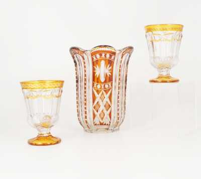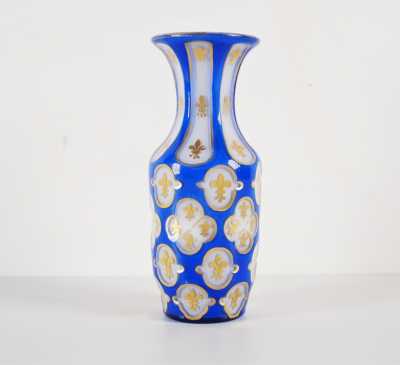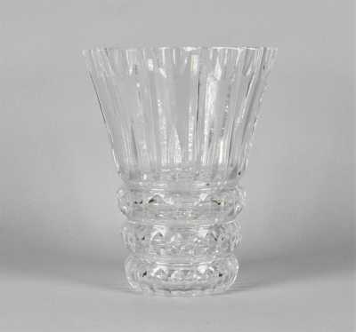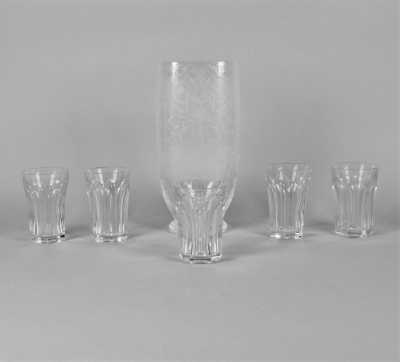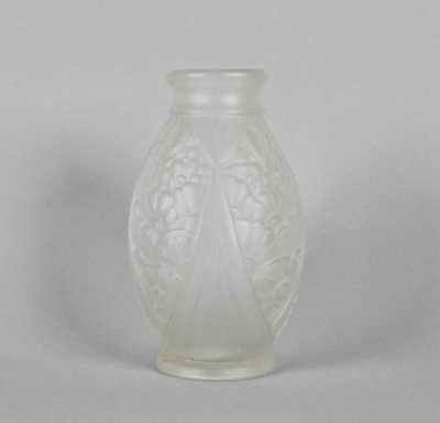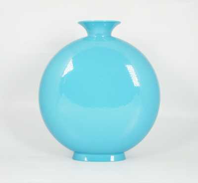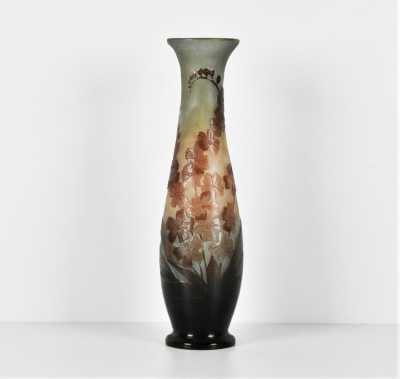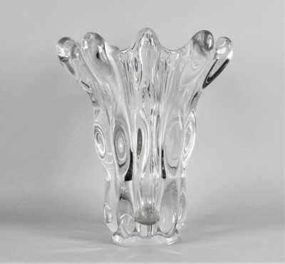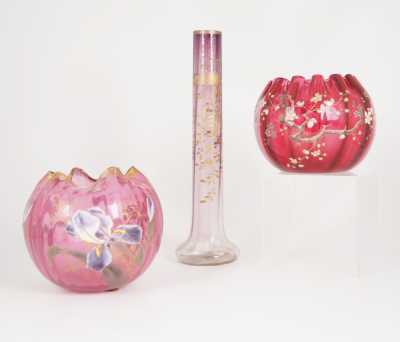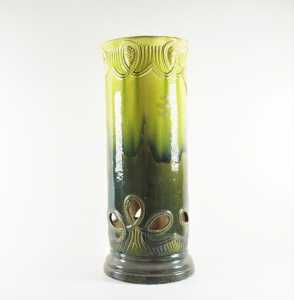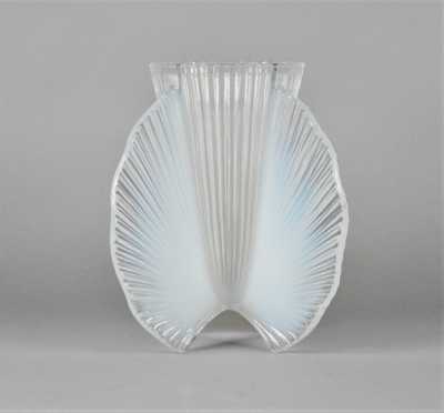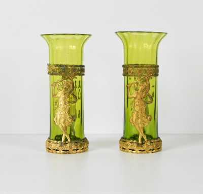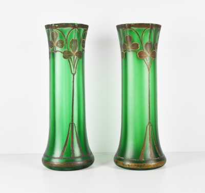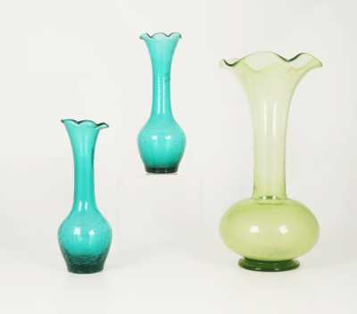 On joint un vase en verre soufflé teinté vert de forme similaire, H. 29 cm (éclat sous la base du vase).