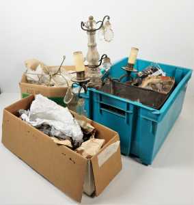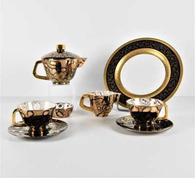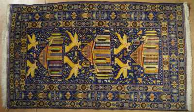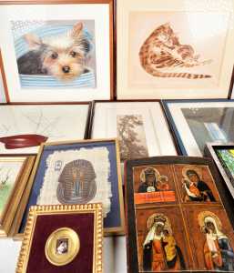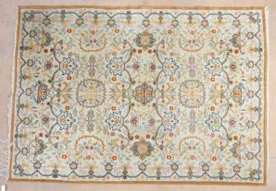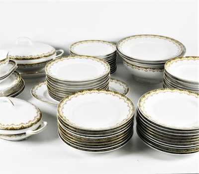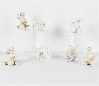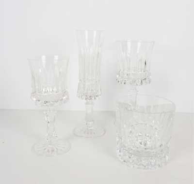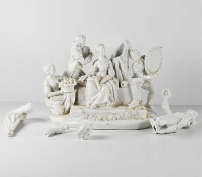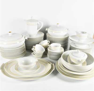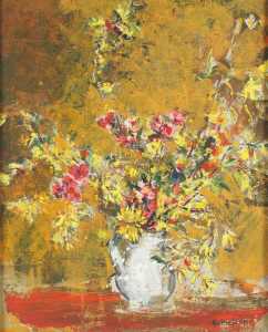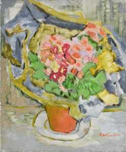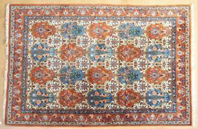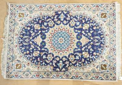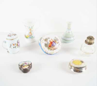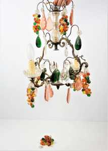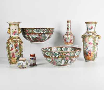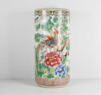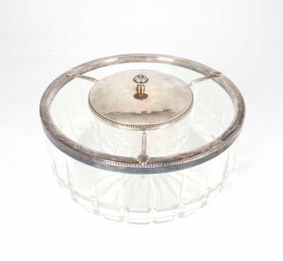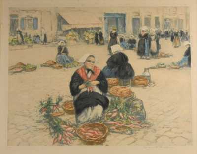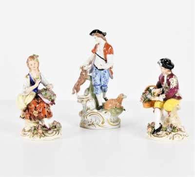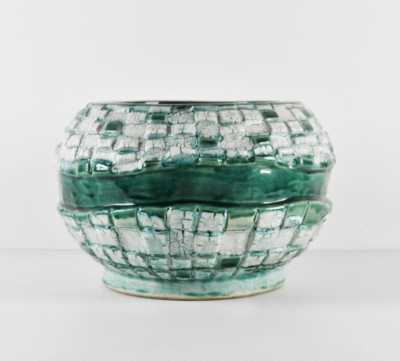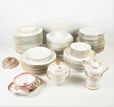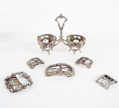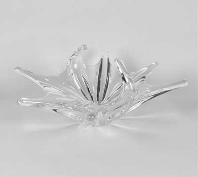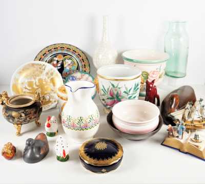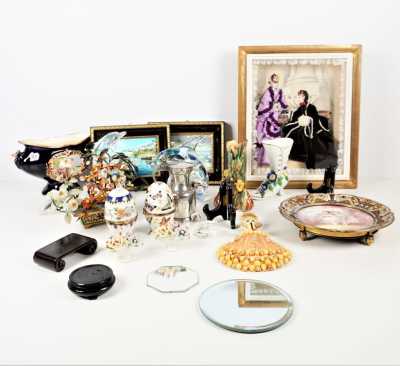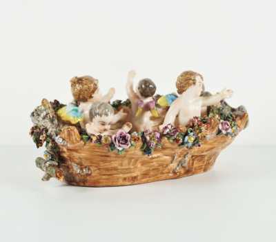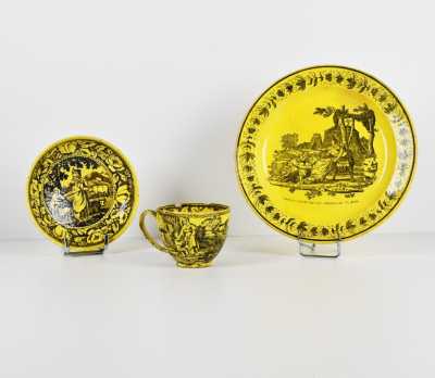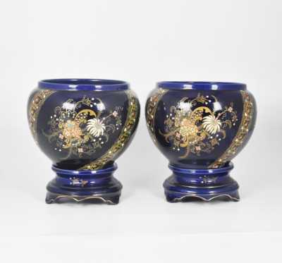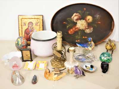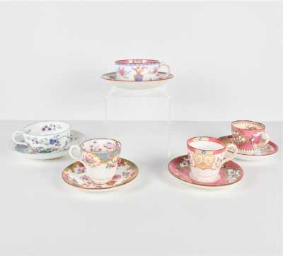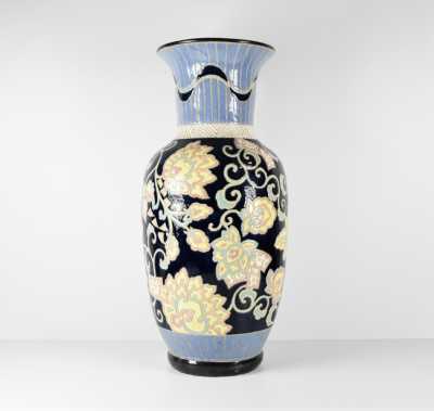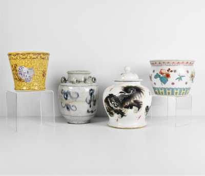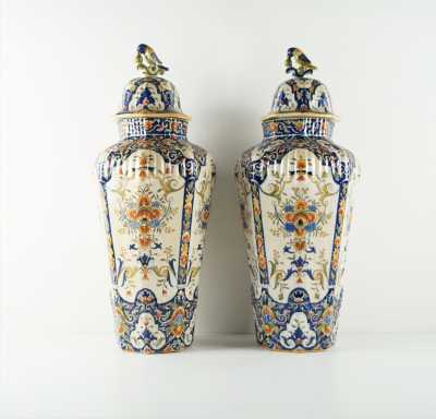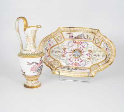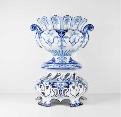 On joint un plat tripode en faïence émaillée polychrome à bords chantournés à motif de fleurs et paniers fleuris...