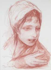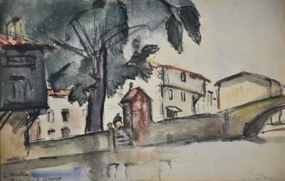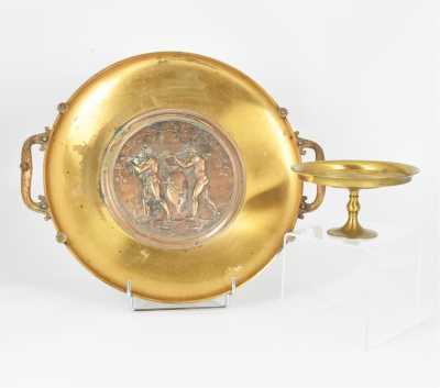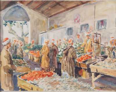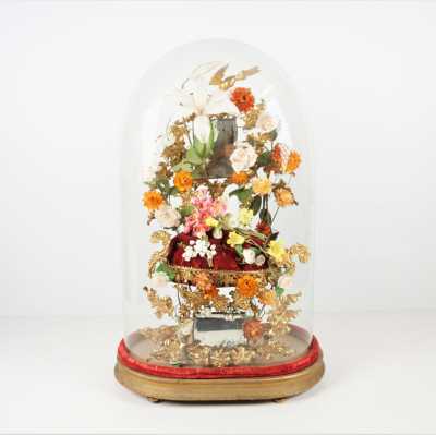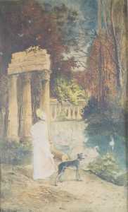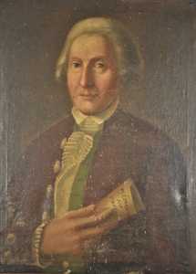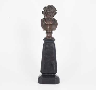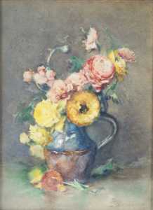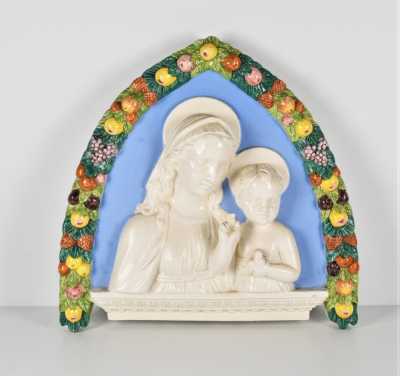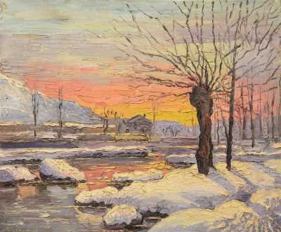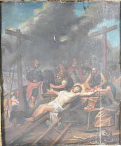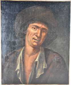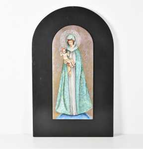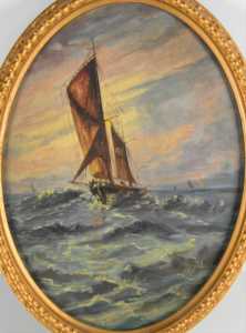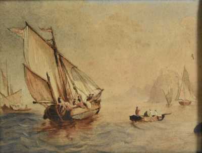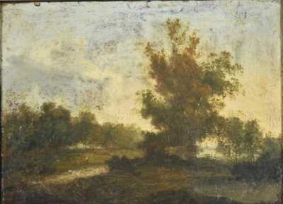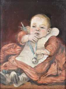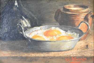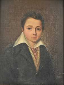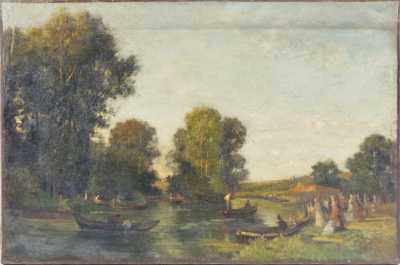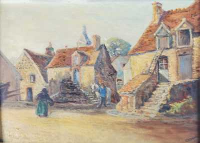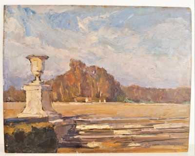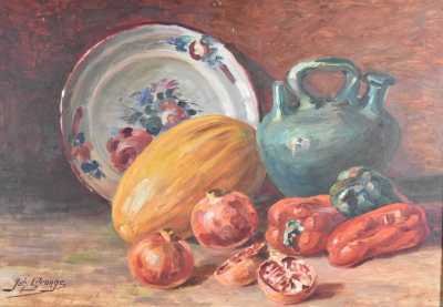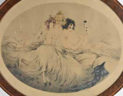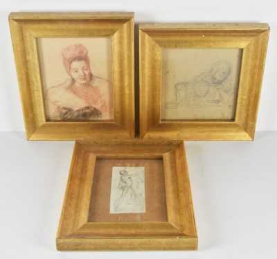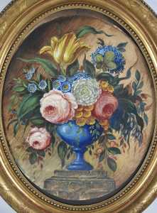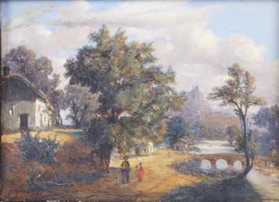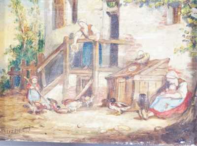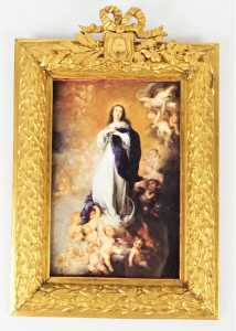 Présenté dans un bel encadrement en bois et stuc doré à la feuille d'or (manques, écaillures à la peinture).