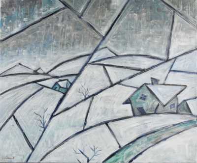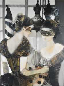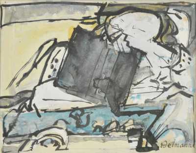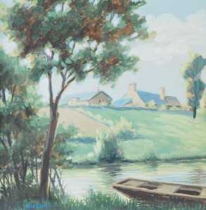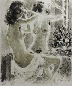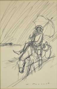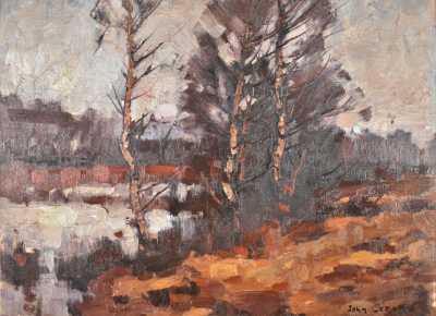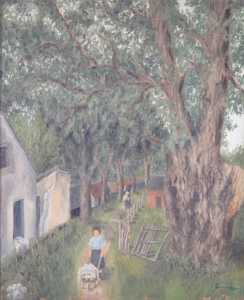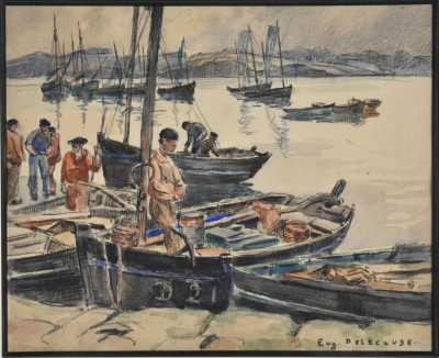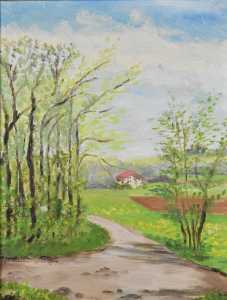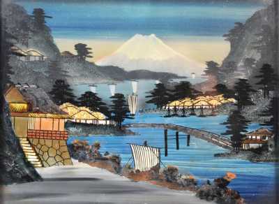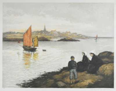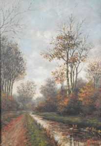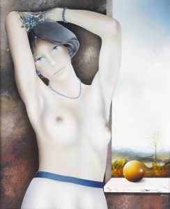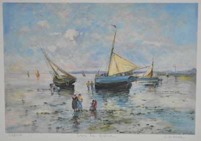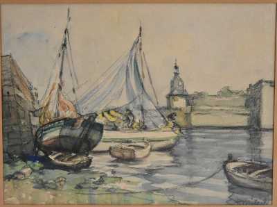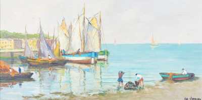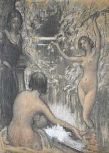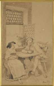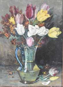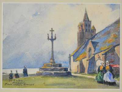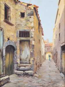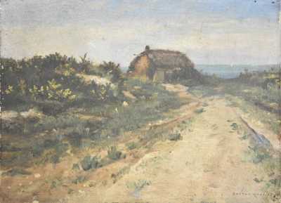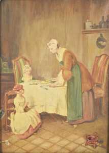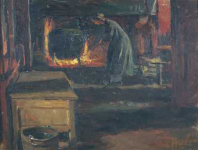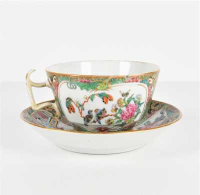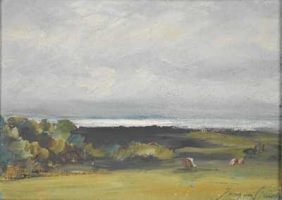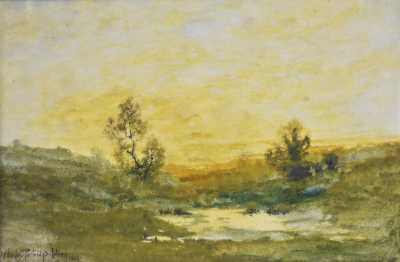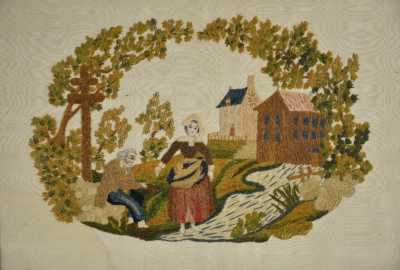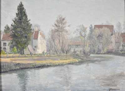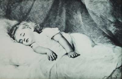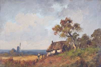 Présenté dans un bel encadrement en bois et stuc doré à la feuille d'or (manques, écaillures à la peinture).