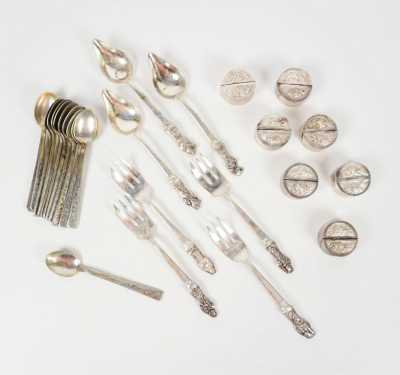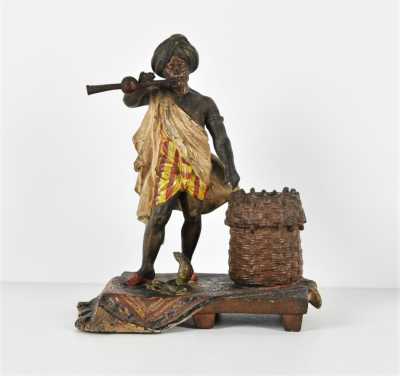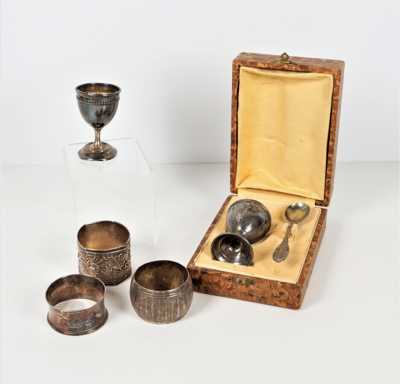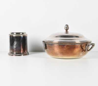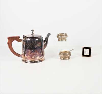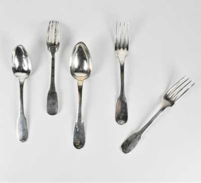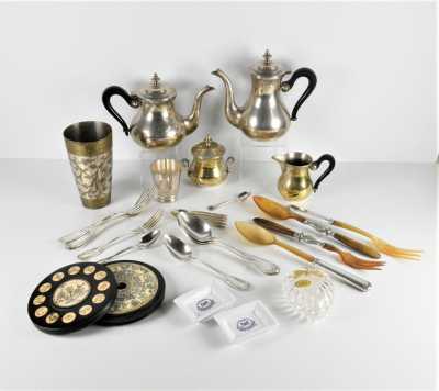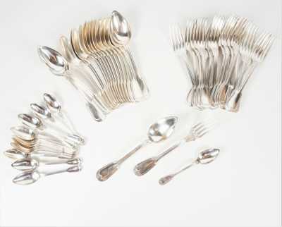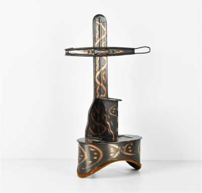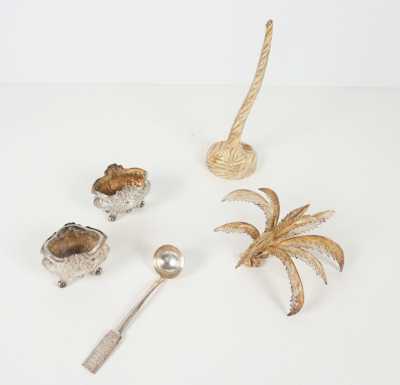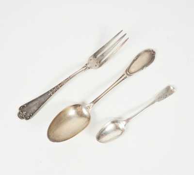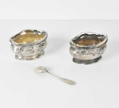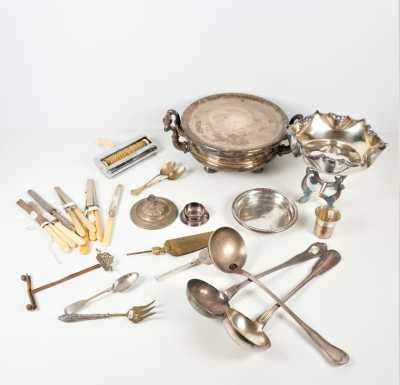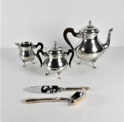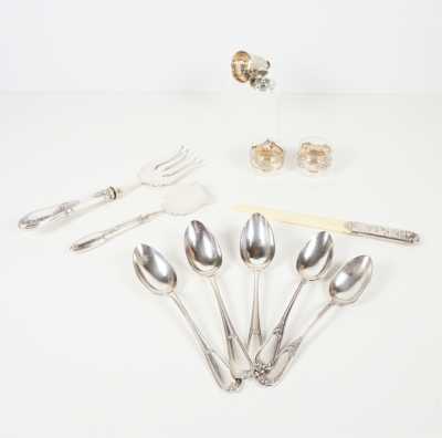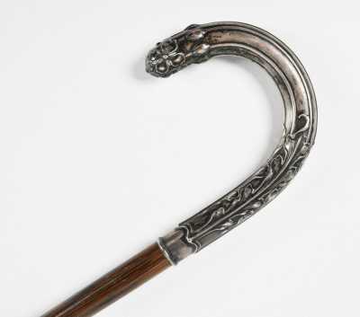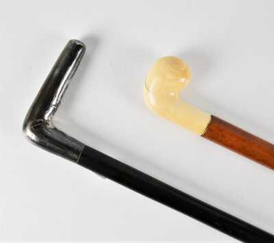 On joint une seconde canne de marche en bois noirci, le pommeau en métal argenté, H. 90 cm (usures, désargentures).