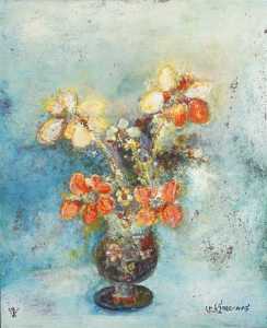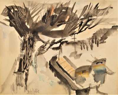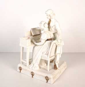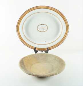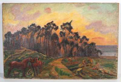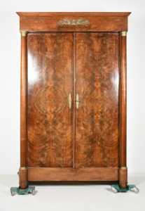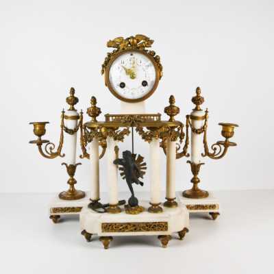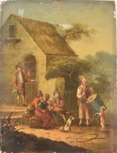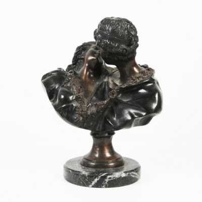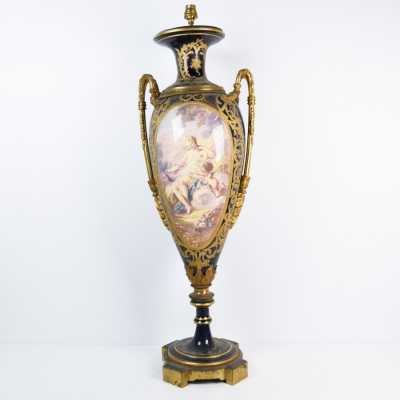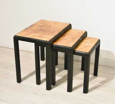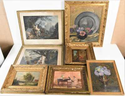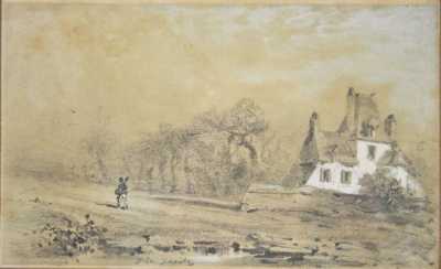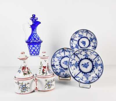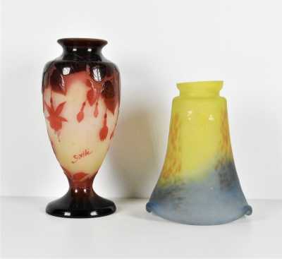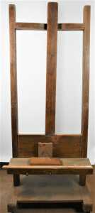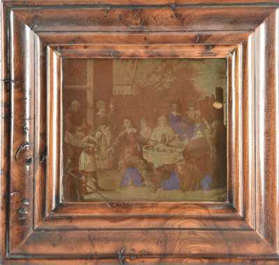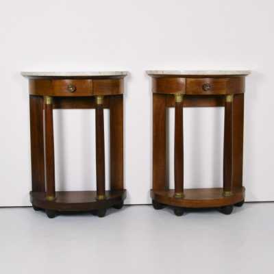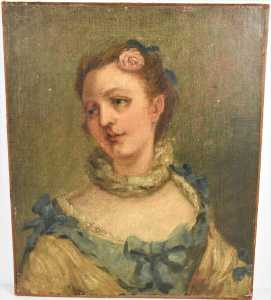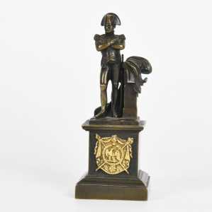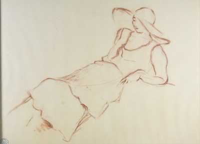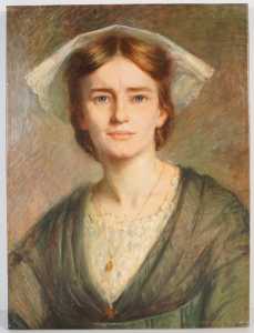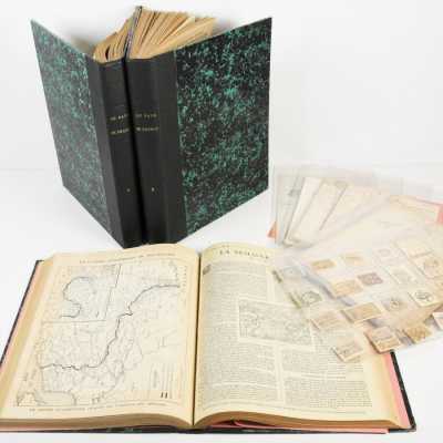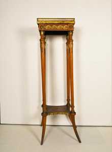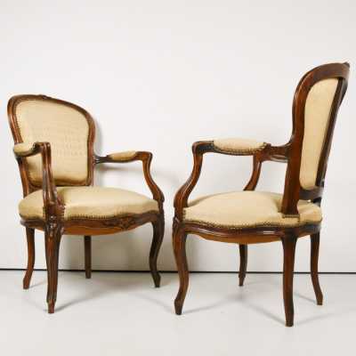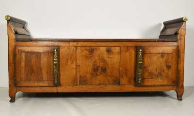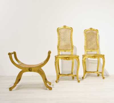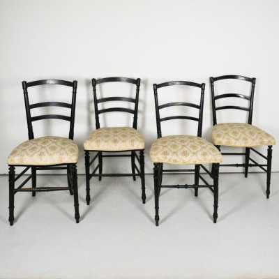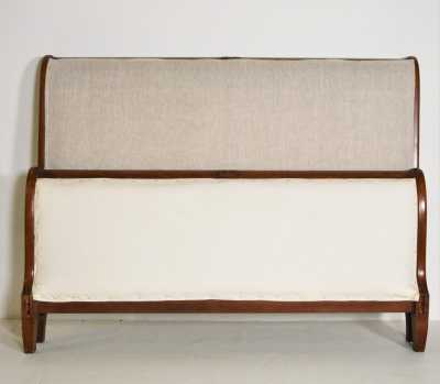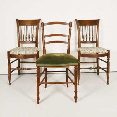 On y joint une chaise de style Napoléon III en bois teinté à dossier trapézoïdal et à balustrade, garnit...
