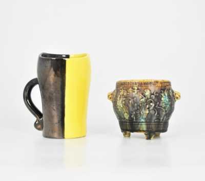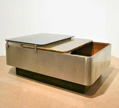 On y joint une jardinière d'angle électrifiée en acier brossé et bois de placa...