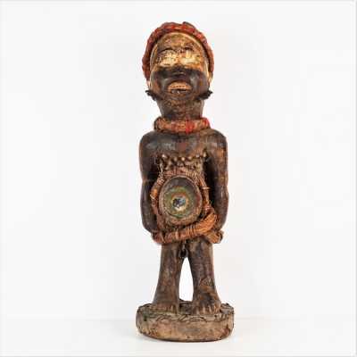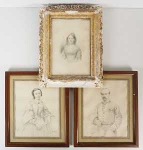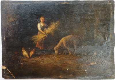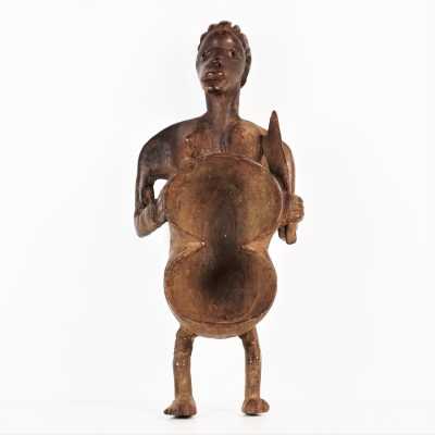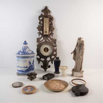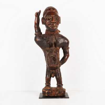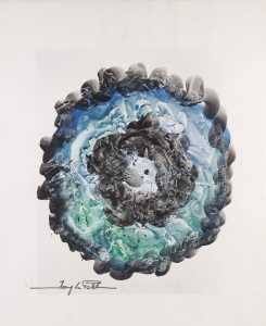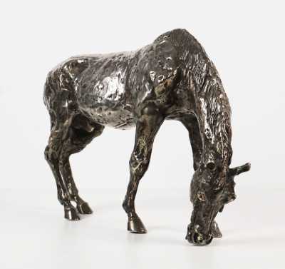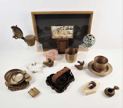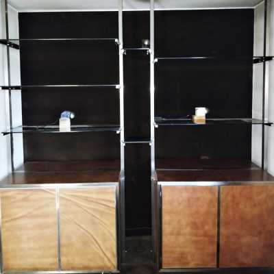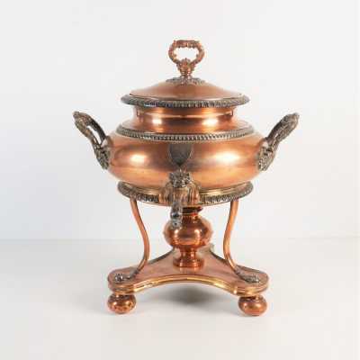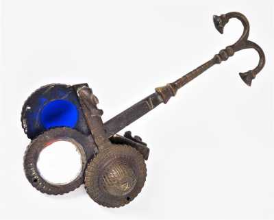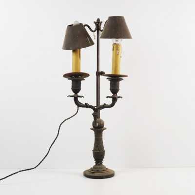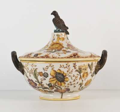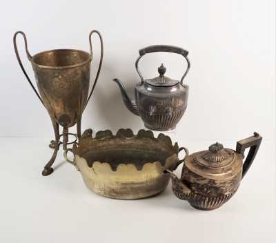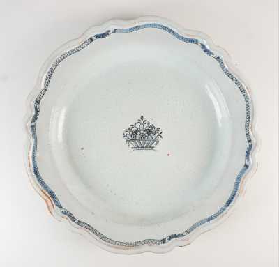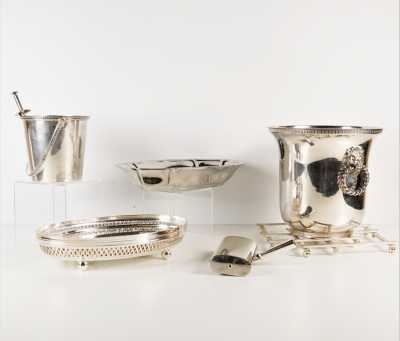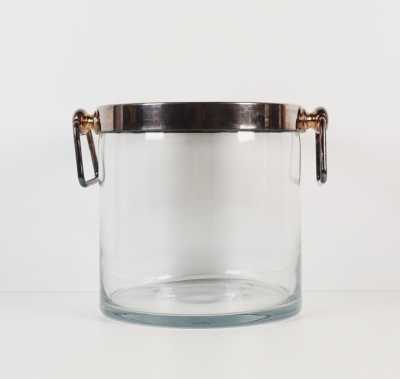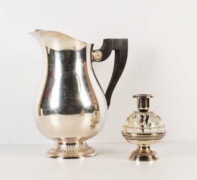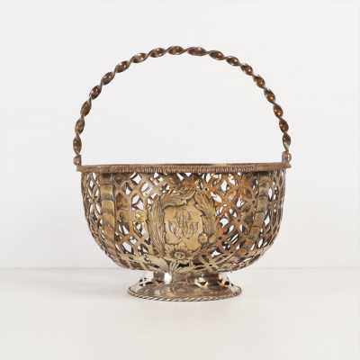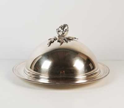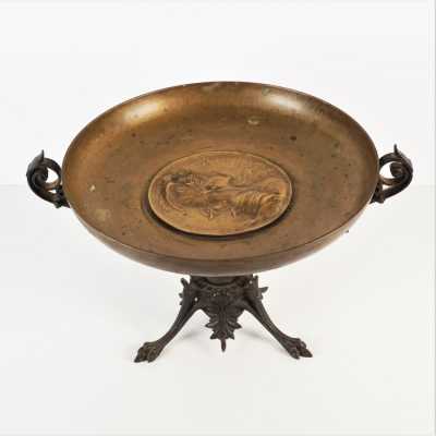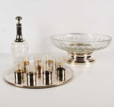 On joint une coupe à fruits circulaire en verre sur piédouche en métal, D. 27.5 cm, et un dessous de plat circulaire en métal.