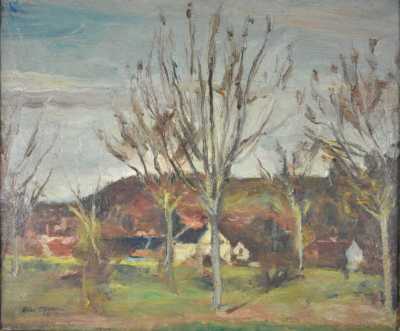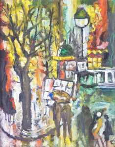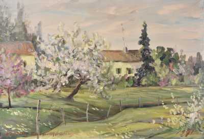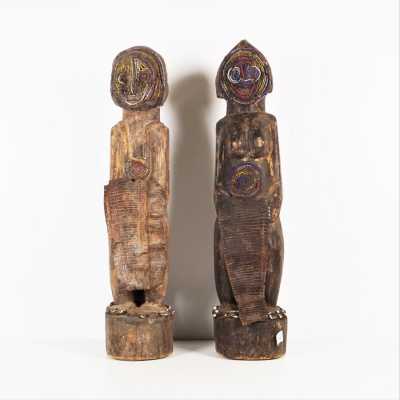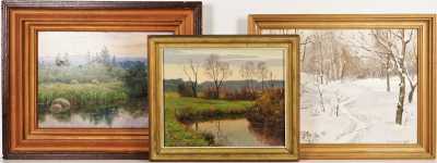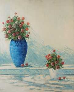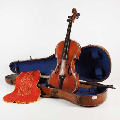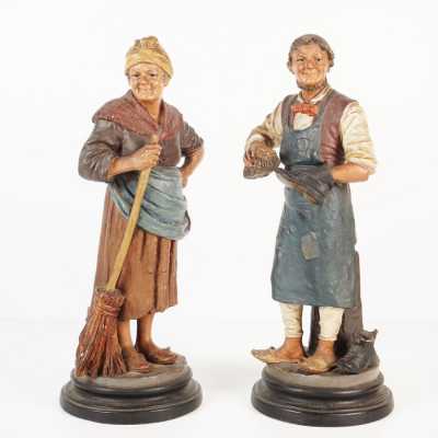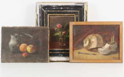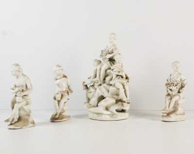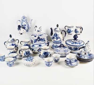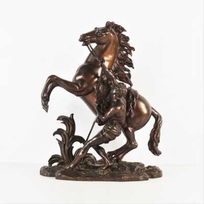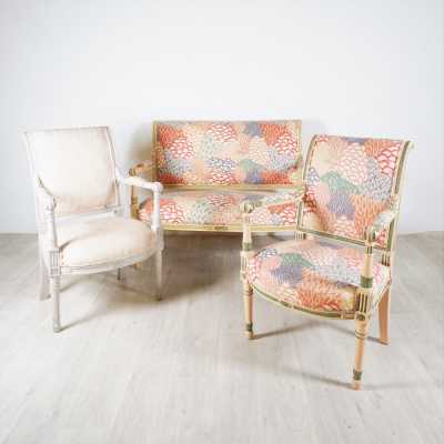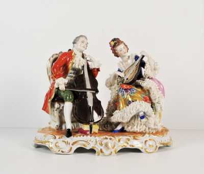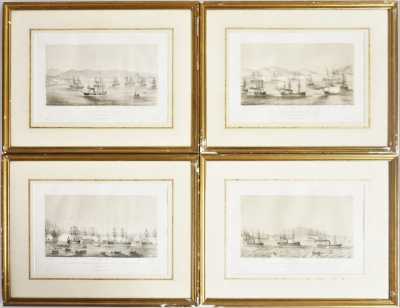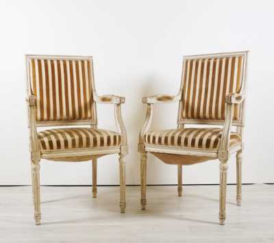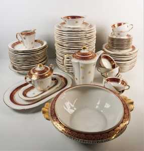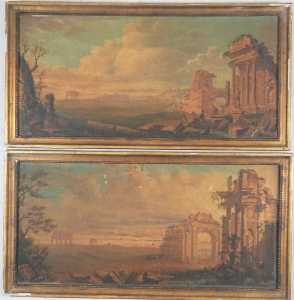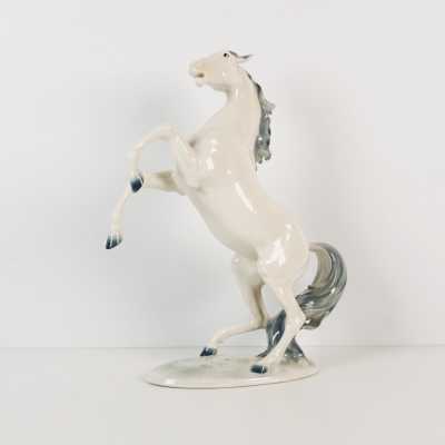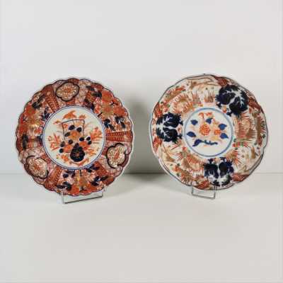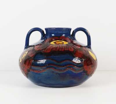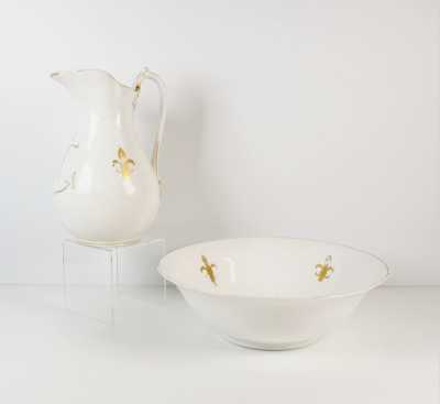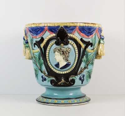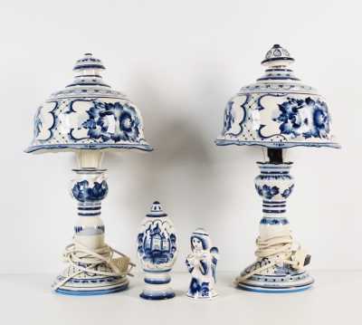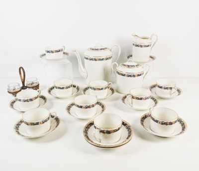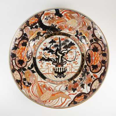 On joint une paire de vases de forme Médicis sur piédouche en porcelaine émaillée rehaussée à l'or à décor de trophé...