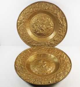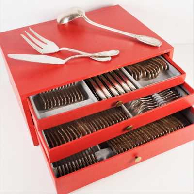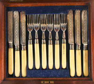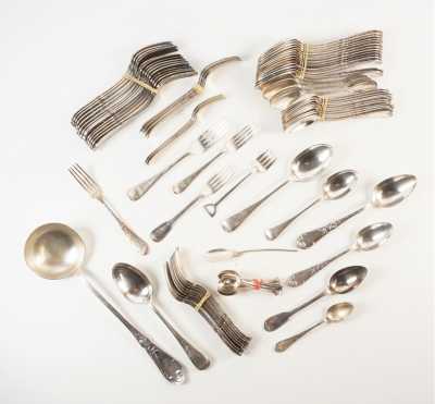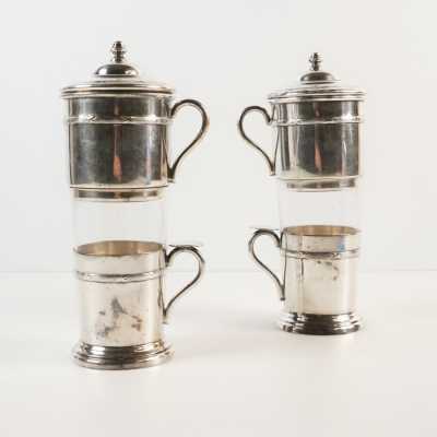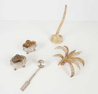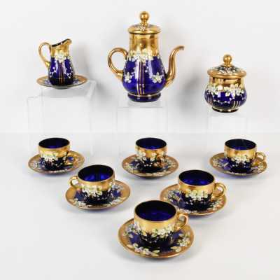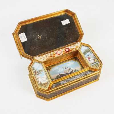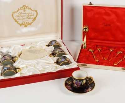 On joint 6 cuillères à moka en métal doré, dans leur coff...