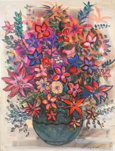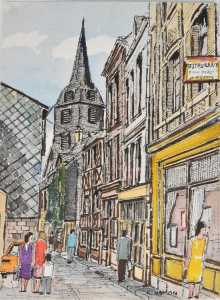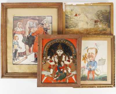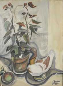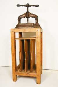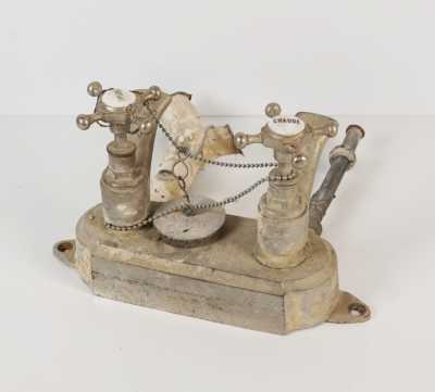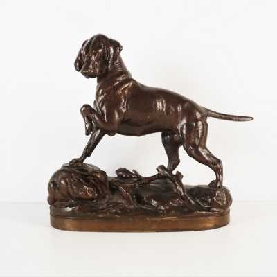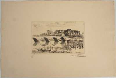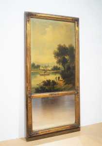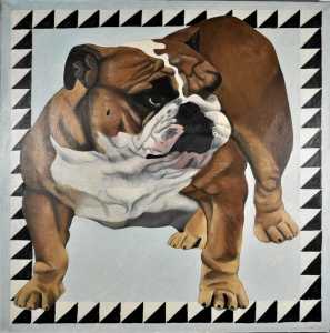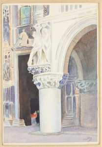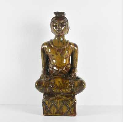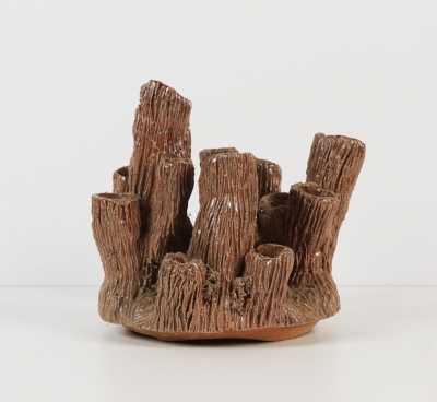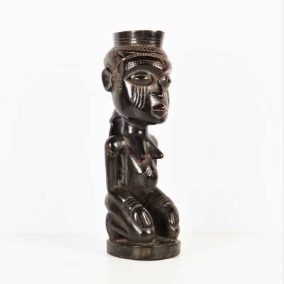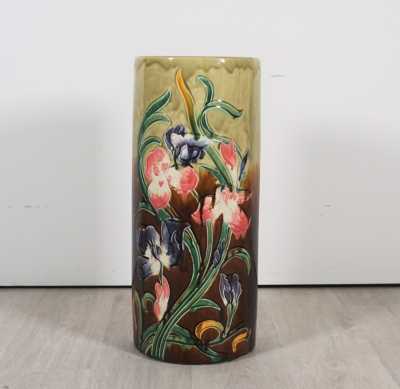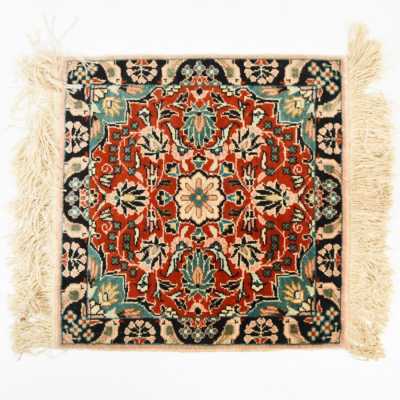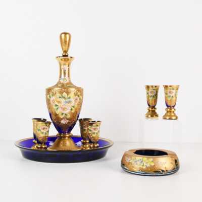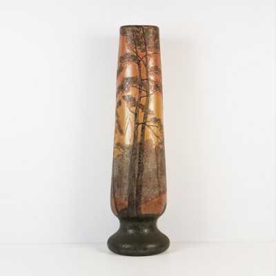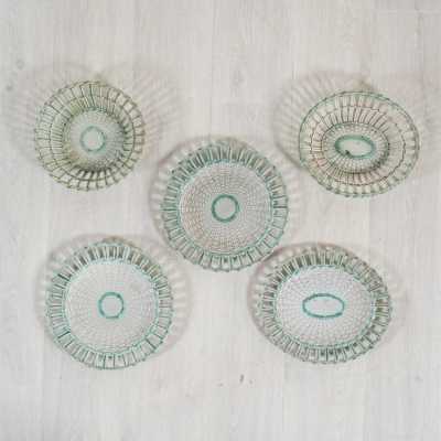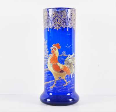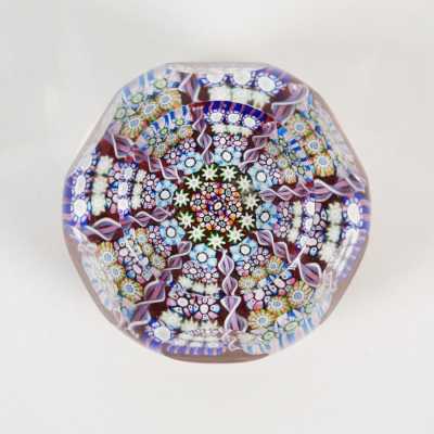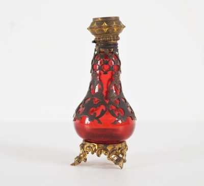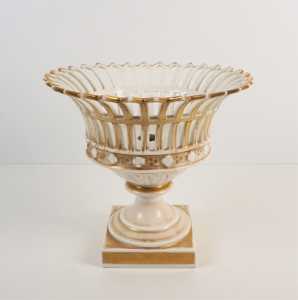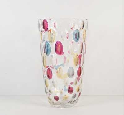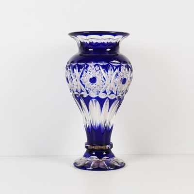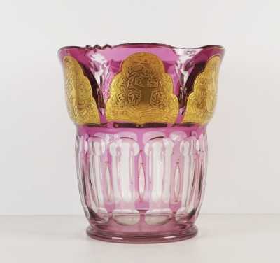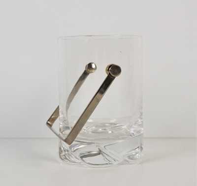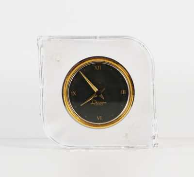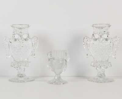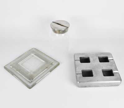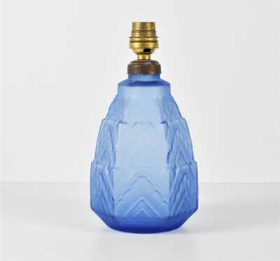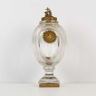 On joint un support en verre moulé de section carrée à décor d'une fr...